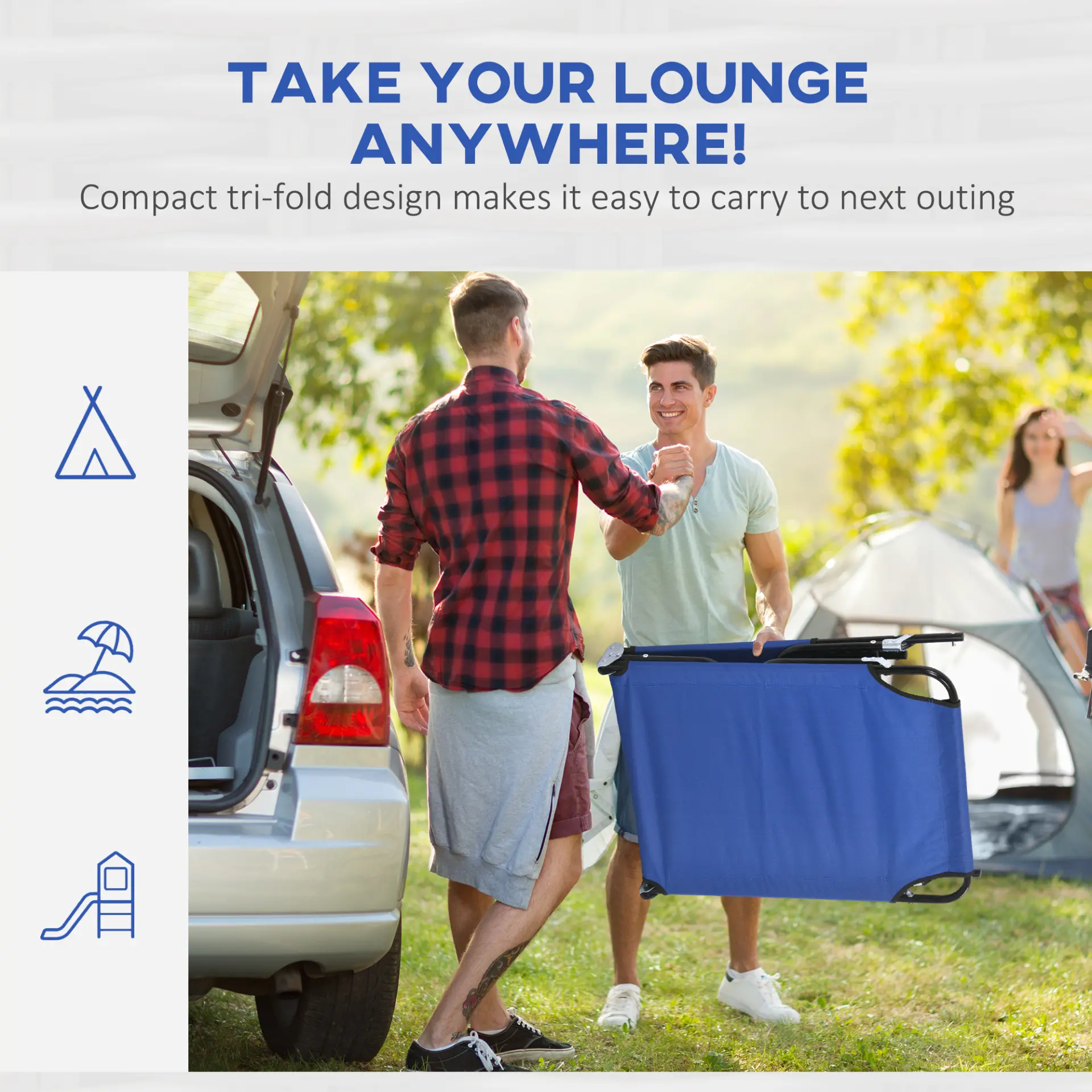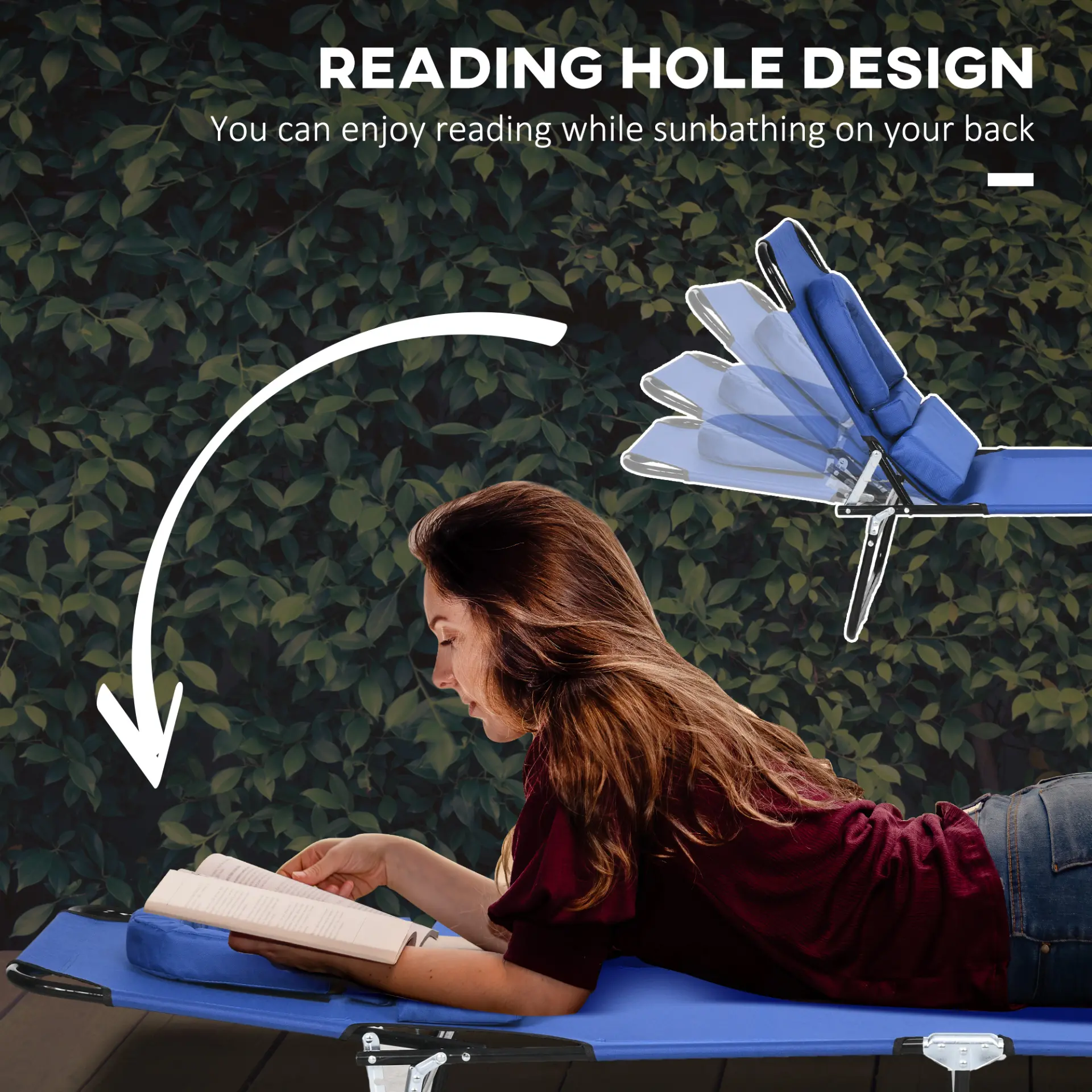 Outdoor Foldable Sun Lounger Set of 2, 4 Level Adjustable Backrest Reclining Sun Lounger Chair with Pillow and Reading Hole, Blue | Outsunny