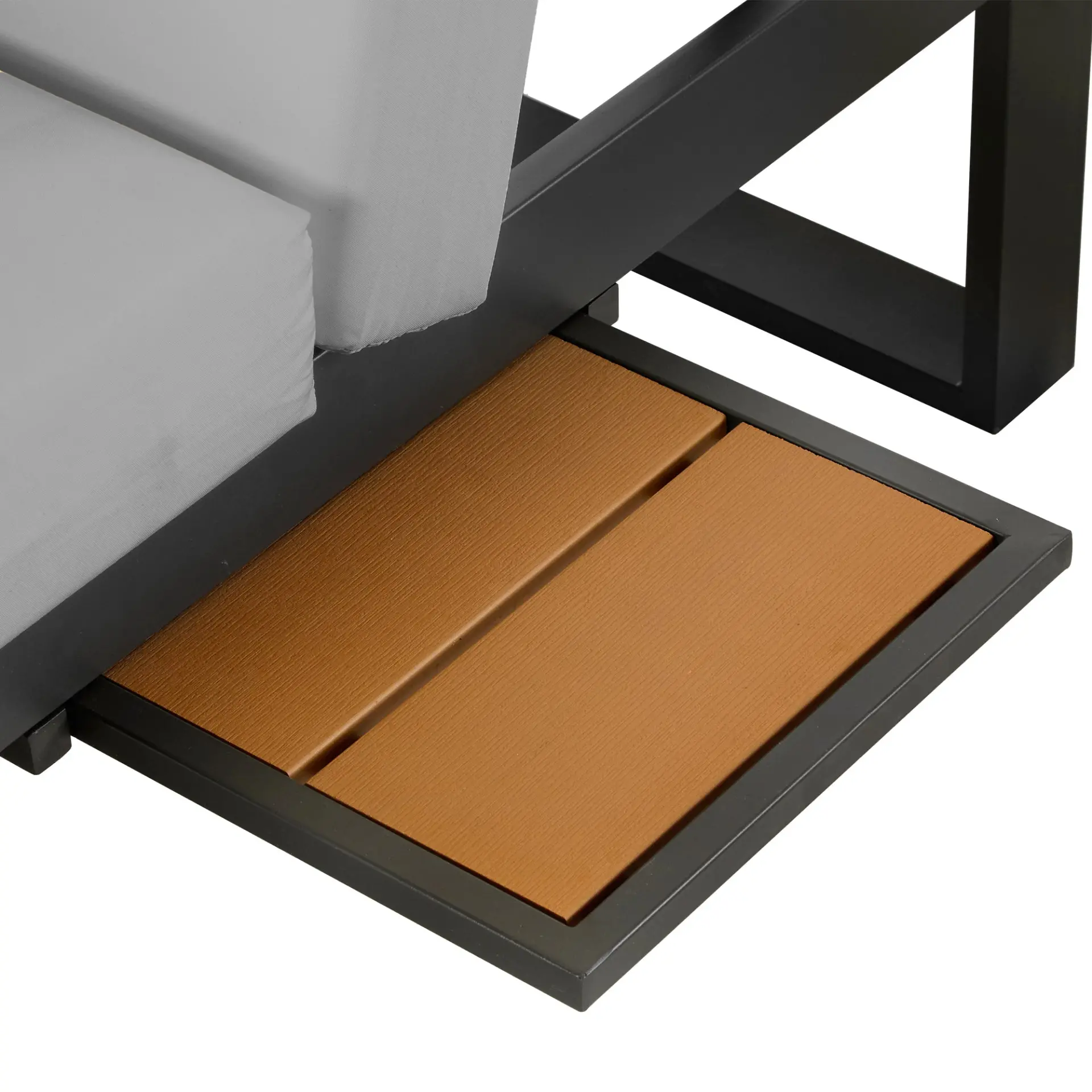 - Hidden Pull-Out Side Tables -Designed for enhanced functionality, this outdoor sofa set features two hidden pull-out side tables discreetly tucked beneath the seating area. These compact yet sturdy tables effortlessly slide out, providing a convenient surface for placing drinks, snacks, books, or decorative items.