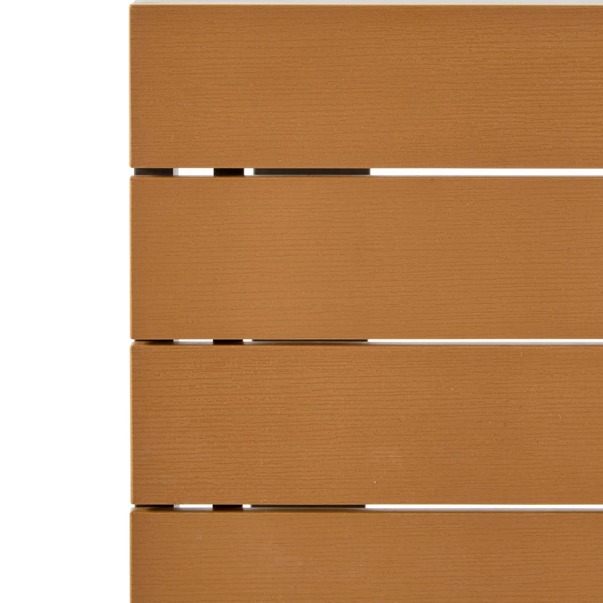- Durable Iron Frame & Weather-Resistant WPC SurfacesBuilt with a sturdy iron frame and WPC surfaces for the tables this set ensures durability and resistance against outdoor elements. The WPC material provides the aesthetic of natural wood while being more resistant to moisture, fading, and cracking.