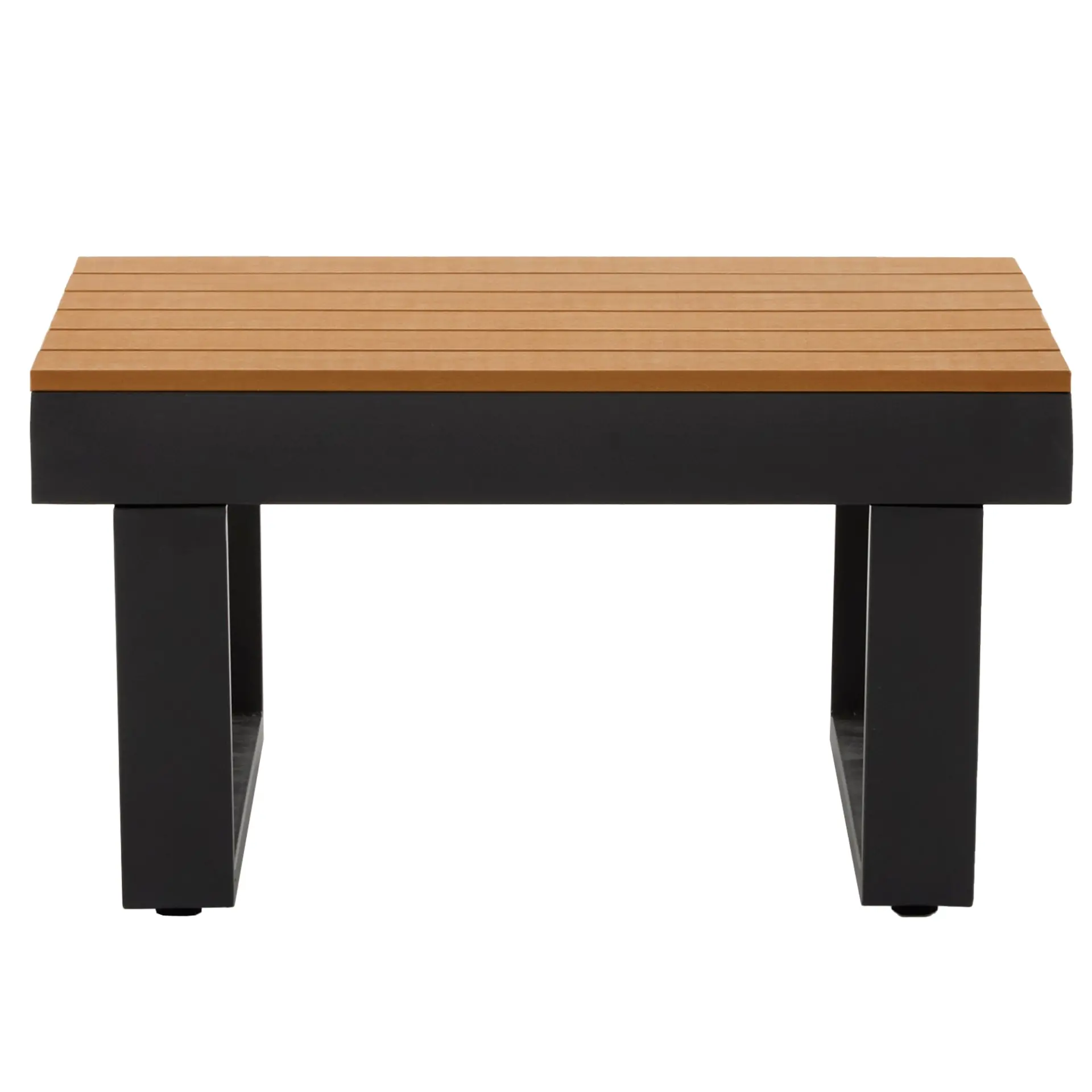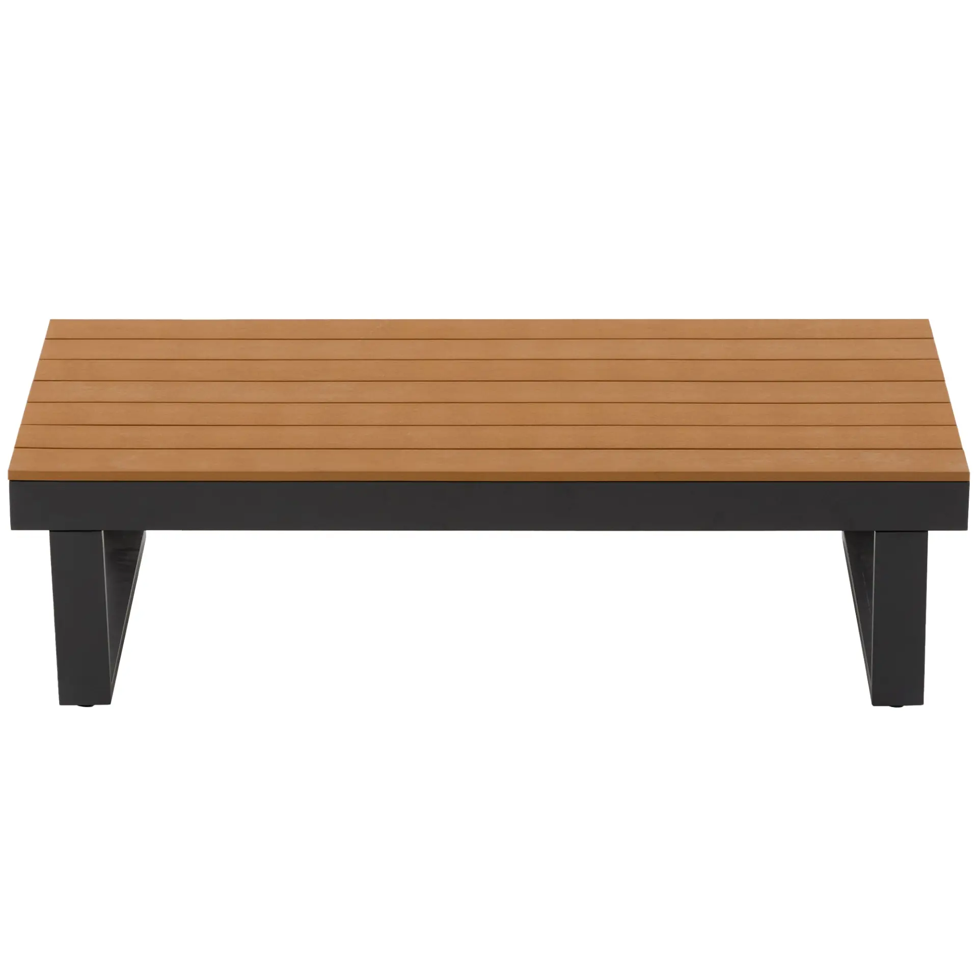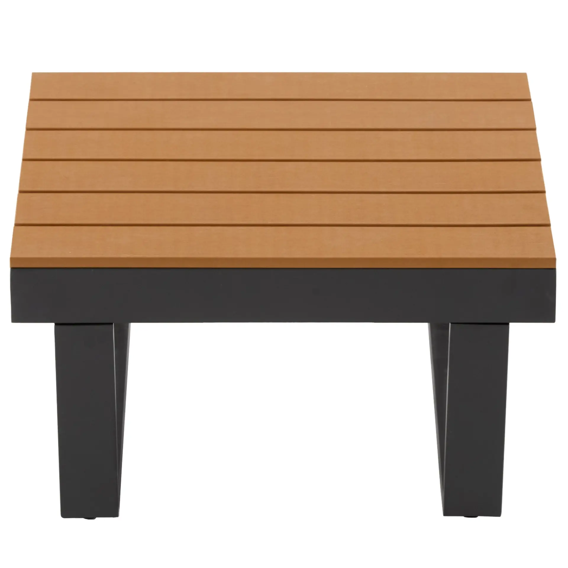 The set features a stylish coffee table with a WPC slatted surface that is water-resistant, providing a practical space for drinks and snacks.