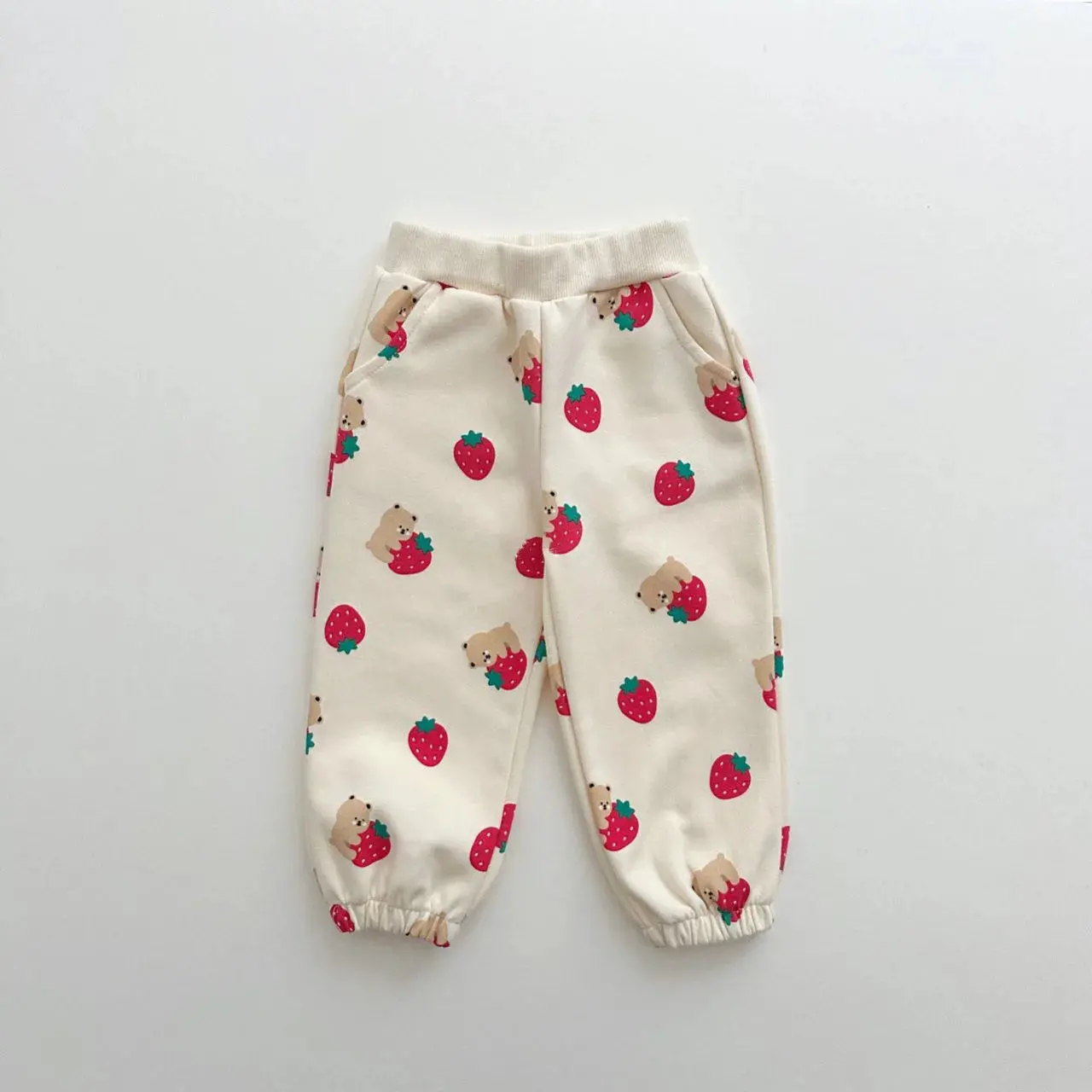 This beautiful cotton tracksuit has many colorful strawberries on it… what a sweetie!