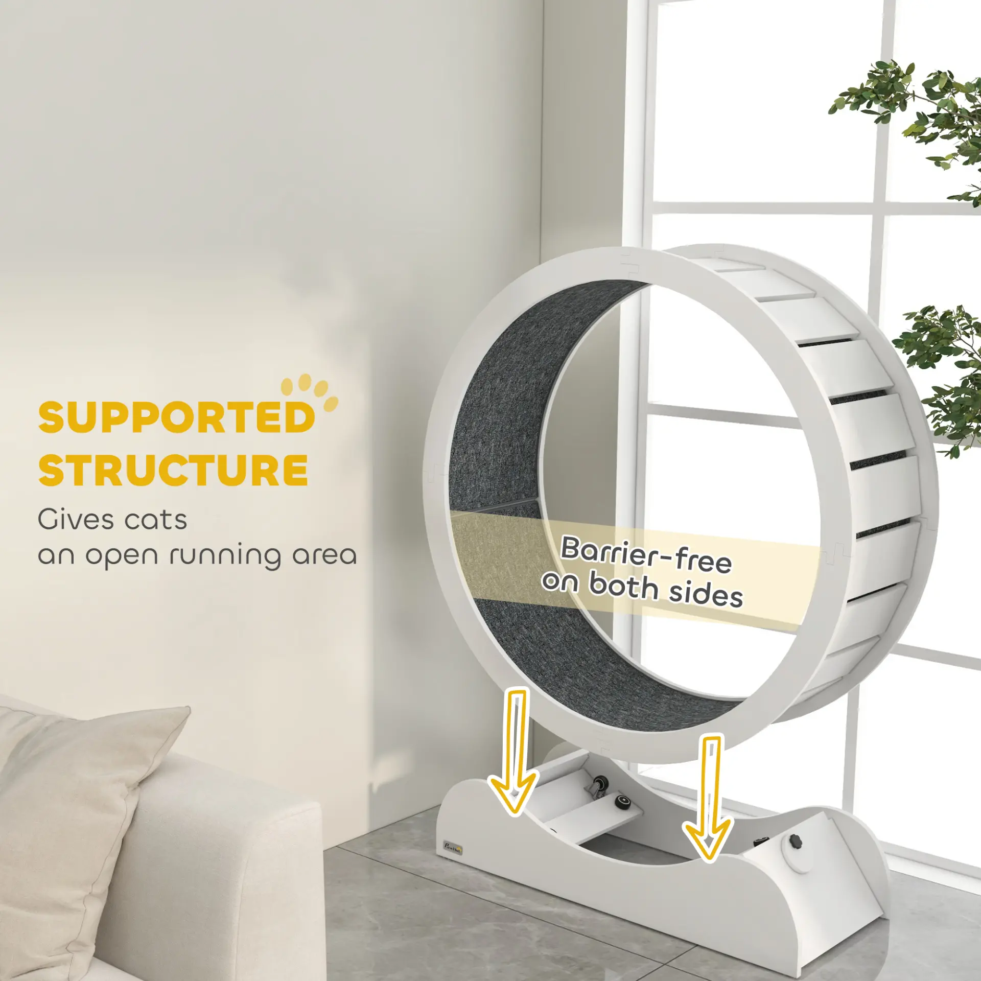 Even at home, cats can stay active and heathy, thanks to this PawHut cat exercise wheel. The inside is covered with a cloth-like material it’s soft on their paws, keeping them comfortable when running. There’s a brake on the base to stop the running wheel when needed and when they’re feeling active again, just turn it back on. A whit wood grain piece, its minimalistic appearance blends nicely with any decoration. Perfect for house cats, they can exercise at home.