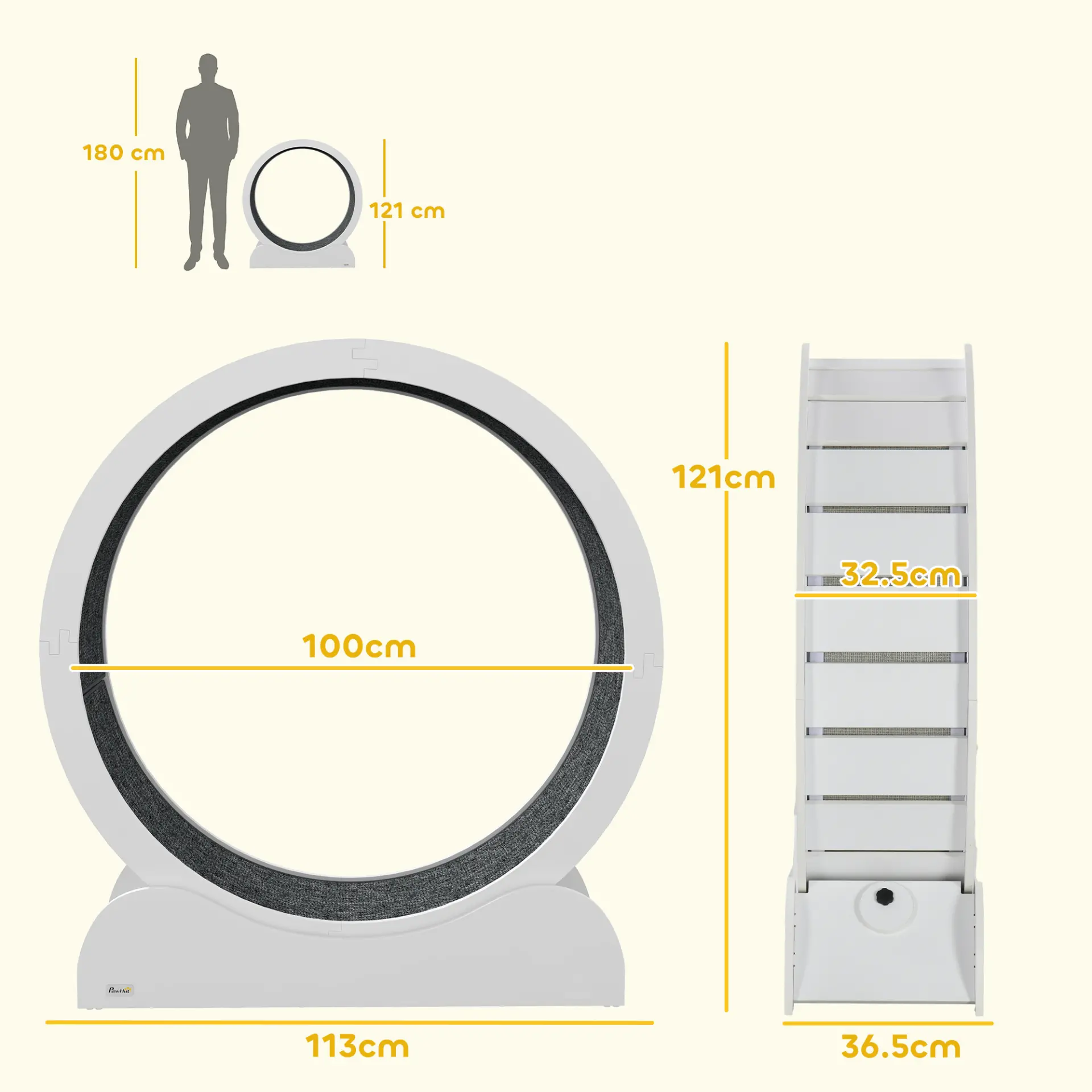 - White wood grain appearance: A simple, yet elegant design, blending perfectly with existing decoration this cat treadmill wheel won’t look out of place when set up.