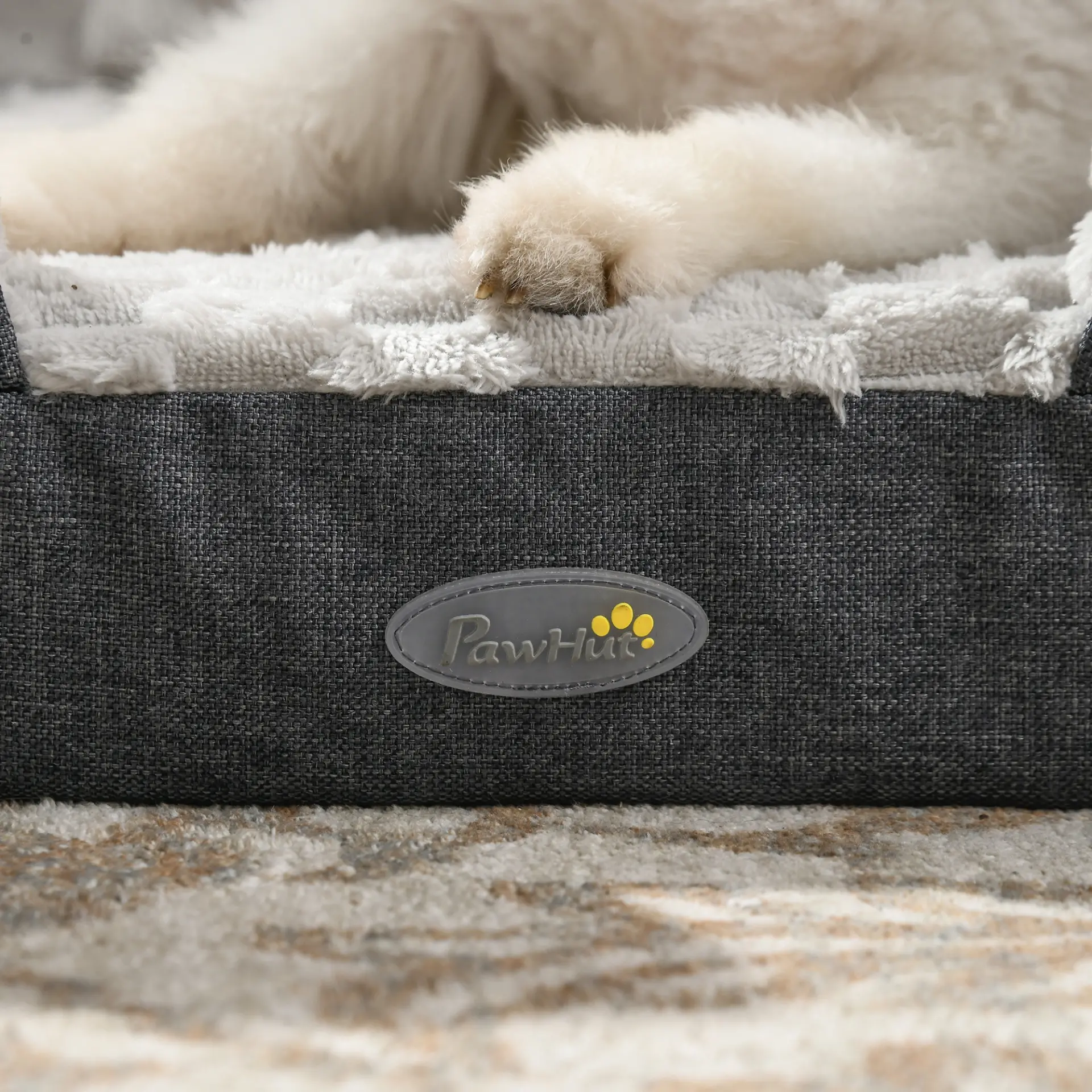 Discover the cosy PawHut Dog Bed, designed with thick sides to cradle your pup’s head and neck. Indulge in 7cm of cushioned padding and soft flannel velvet, ensuring a tranquil, secure haven. Great for your furry friends, this dog bed is also suitable as a cat bed. It features a non-slip bottom and a washable cover for easy maintenance.