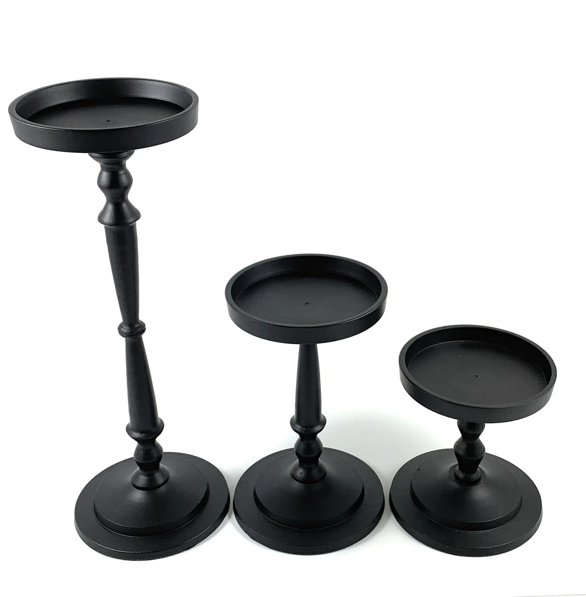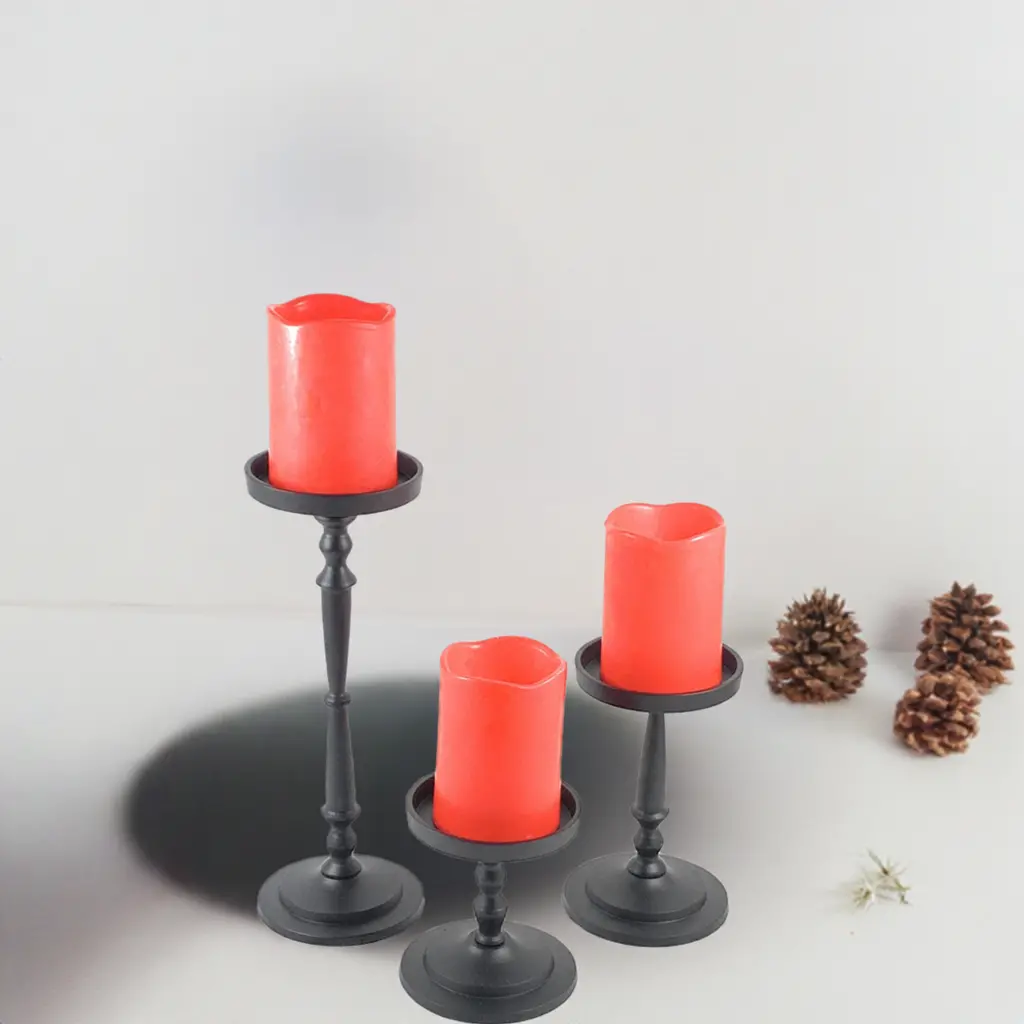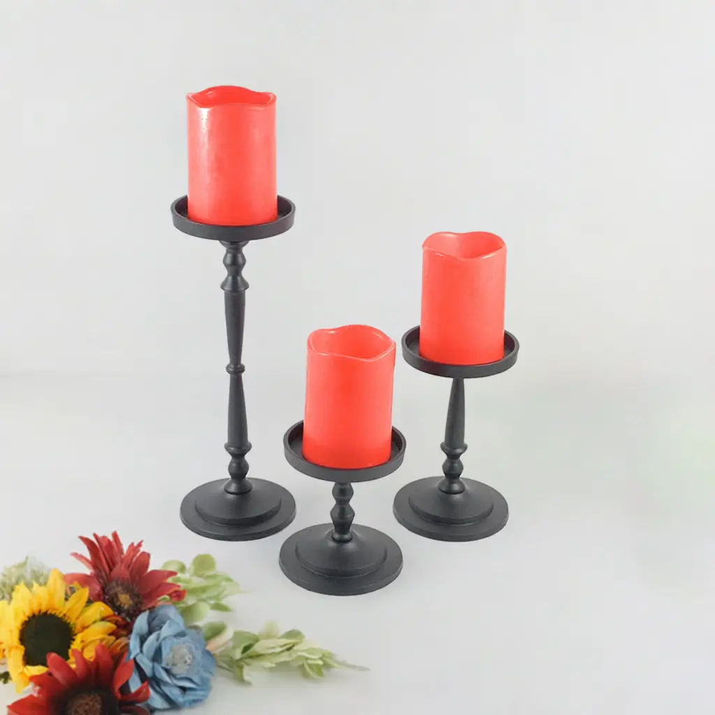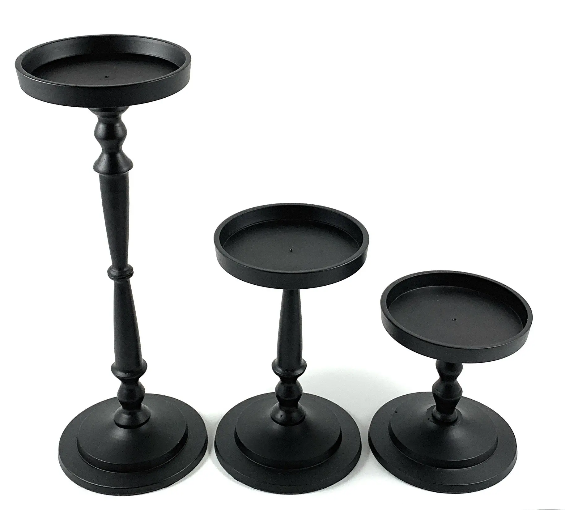 These beautiful and elegant set of 3 pillar candle holders comes in different sizes with matte black finish. You can make a bold statement with the high contrast of glossy black metal pillar candle holder and candle of your choice. It has perfect space to place up to 3.5 votive, filled, pillar, adhesive and tealight candles, in the middle. The simple lines are easy to blend with other table decoration styles or mantel or foyer display. It has sturdy circular base which is 4.2 diameters. These are perfect gift to give in weddings, housewarming and anniversaries. Made of metal: Aluminum
