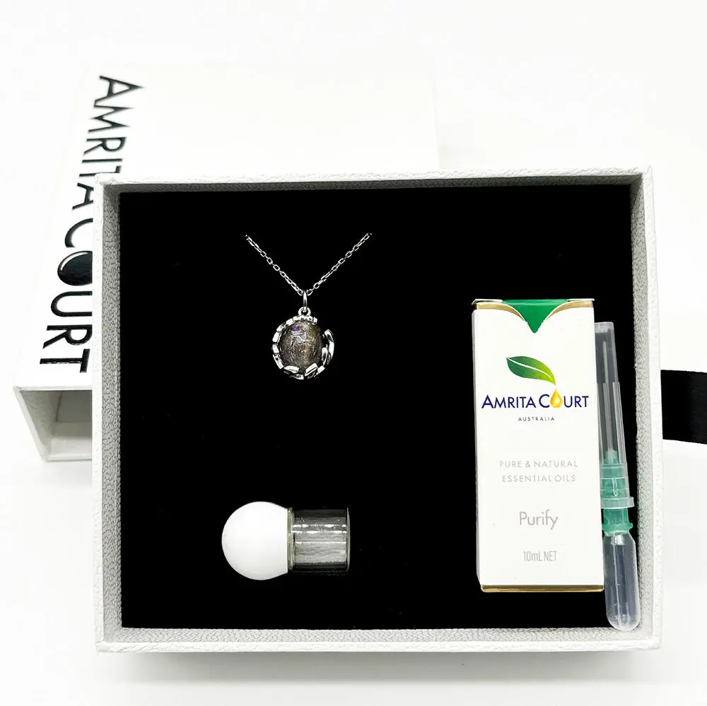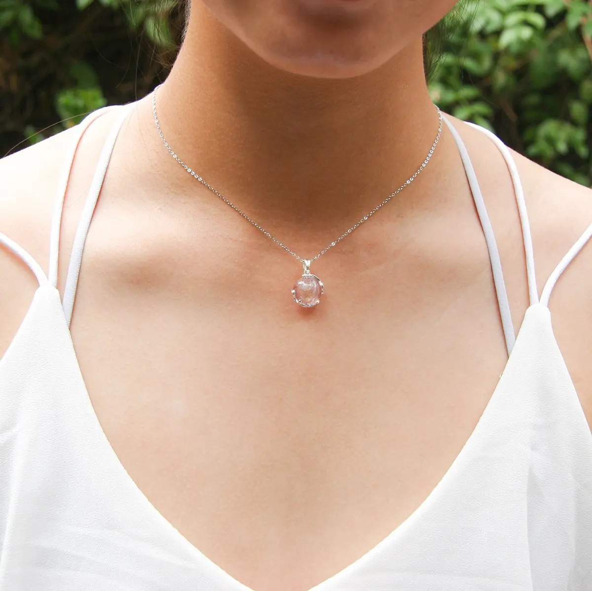 Serving as both a statement piece and a practical accessory, the glass ball doubles as a container for a drop of essential oil, allowing you to diffuse your favorite scent effortlessly on the go. Embodying beauty, versatility, and functionality, this necklace is a timeless addition to any ensemble, ensuring you feel happy, calm, content, and confident on all occasions.