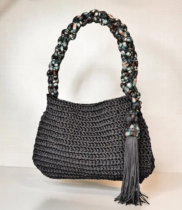 The body is tightly crocheted with strength and structure in mind, but the true statement lies in the handle: crafted from authentic Marrakesh cord, it brings a touch of global elegance and craftsmanship rooted in Moroccan tradition. Thick, braided, and crowned with a flowing tassel, it feels like a bridge between heritage and modern grace.