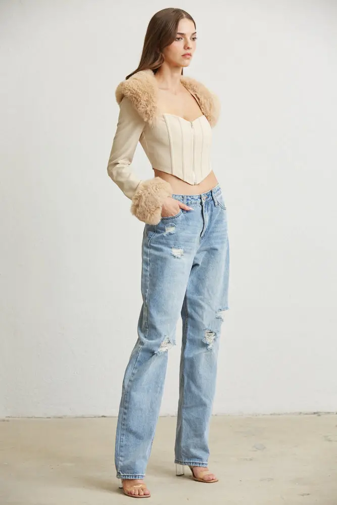 – REMOVABLE FAUX FUR NECKLINE & CUFF TRIM