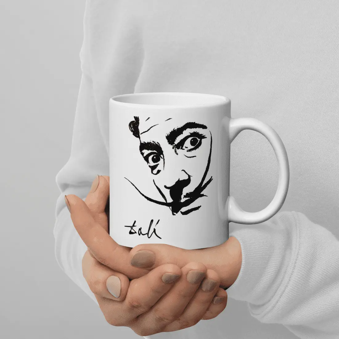 Thisfabulous mug features a drawing of the most famous portrait of Salvador Dali. The enigmatic gaze captured in Salvador Dali’s iconic portrait unveils the boundless depths of imagination, daring us to explore the surreal landscapes within our own minds.