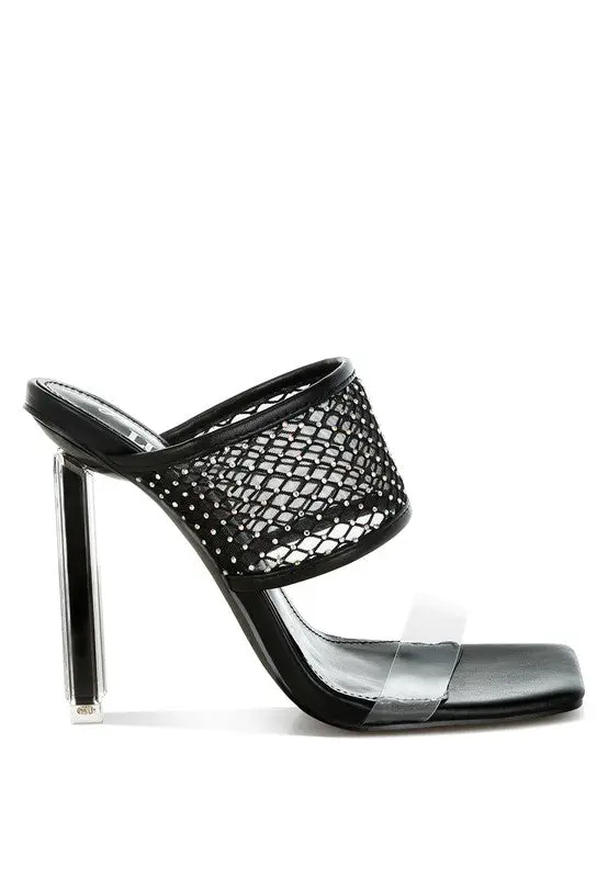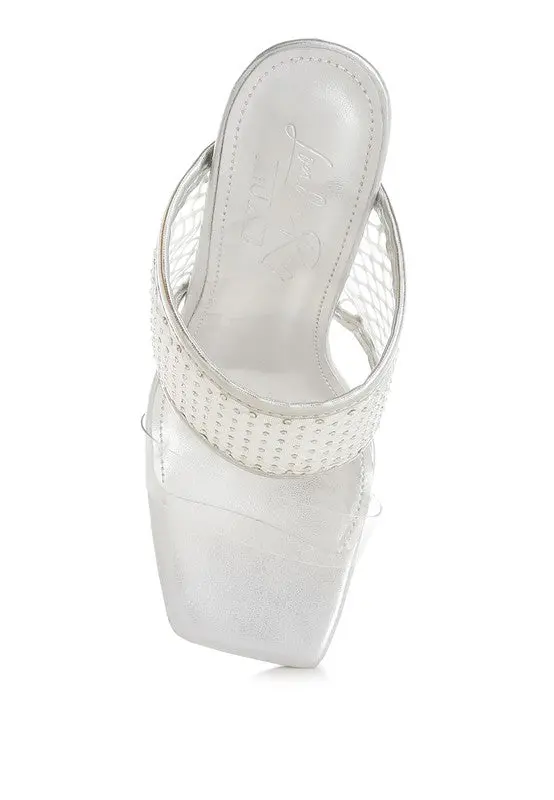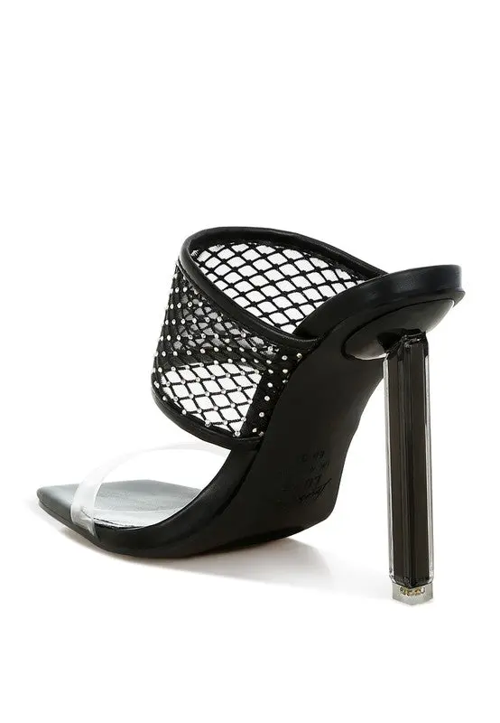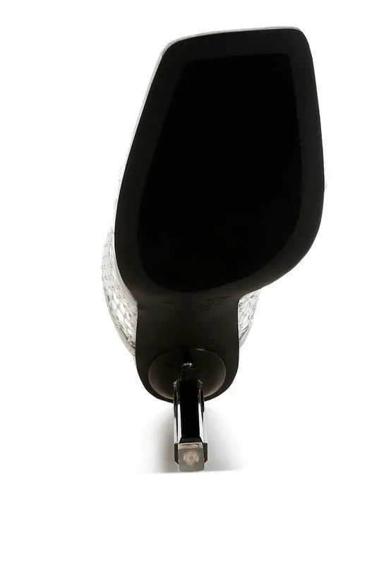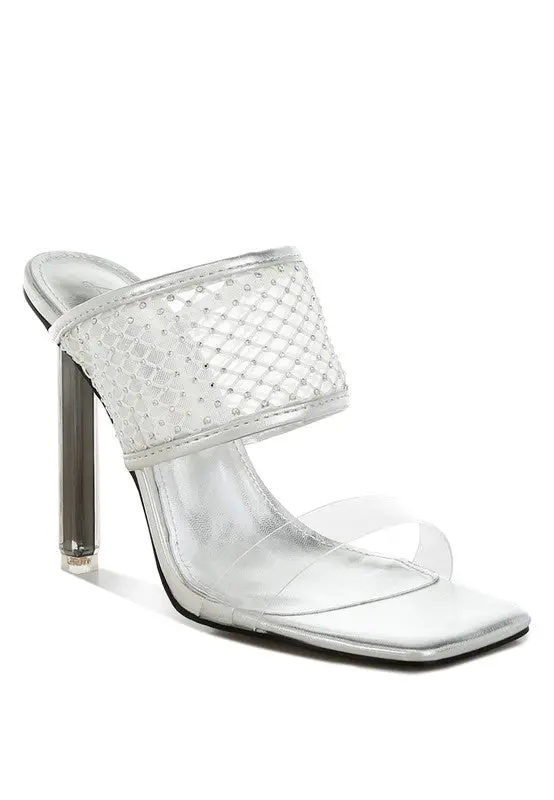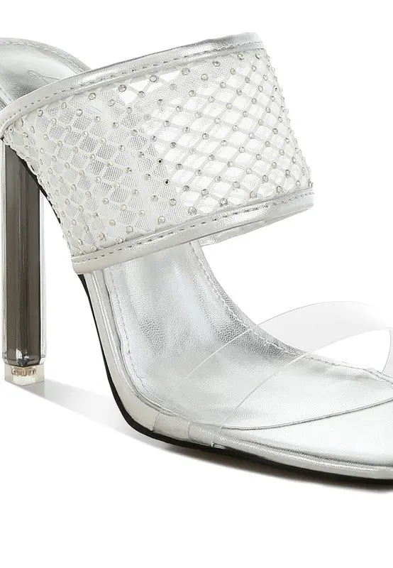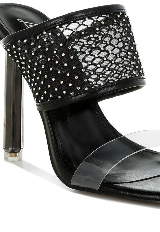 Make a chic addition to your footwear collection with these clear heels featuring a rhinestone embellished mesh upper. The transparent strap adds a touch of whimsy while the cushioned insole retains comfort. Style these heels with your elegant party dresses to make a shine bright.