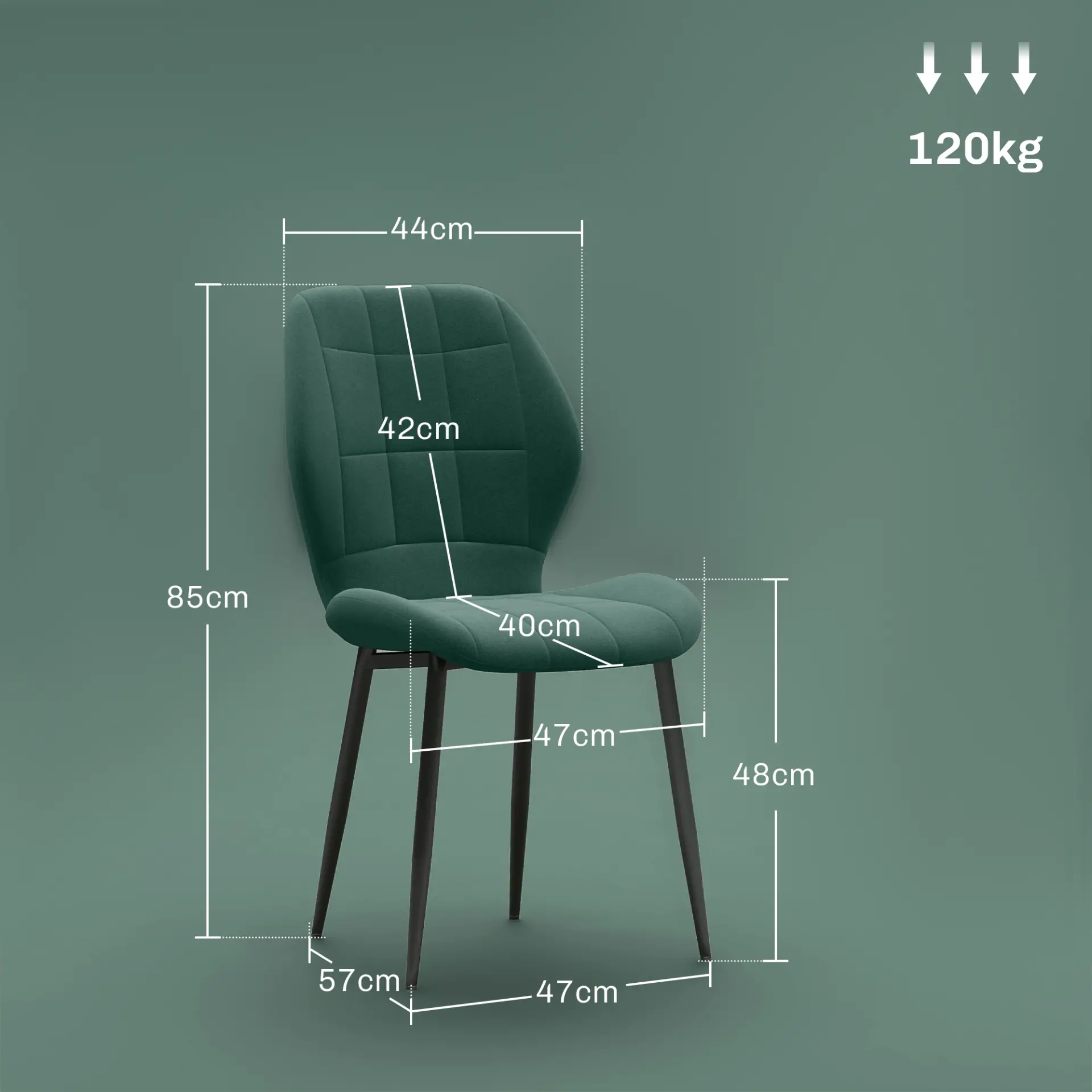 Blending a relaxed design with plenty of comfort, comes this HOMCOM set of four dining chairs. A relaxed tub shape, with no arms, 5cm thick padding and soft flannel upholstery make each accent chair a comfortable piece you’ll love using. Look to the steel frames for strong support; these dining room chairs are finished with foot pads which gently protect your floor from marks.