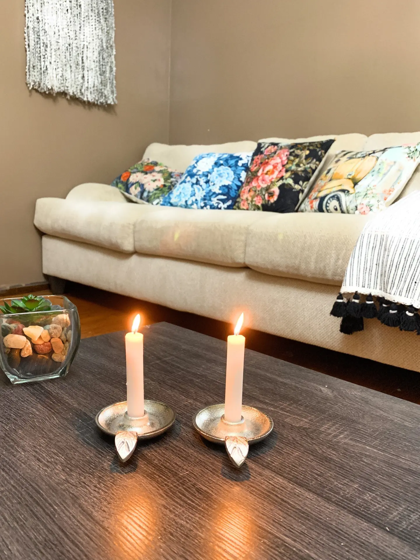 100% Aluminum. Set of 2 Taper Candle Holder with rustic silver finish. Handle is shape of a leaf. Handcrafted by Artisan Dimensions: 3.6″L, 3.6″ W, 1.5″H. Dish is 3.6″, 3.8 oz Great for weddings, restaurants, spas and other decorative purposes Perfect for standard size taper candles Add a touch of elegance and charm to any space with these beautifully crafted 100% aluminum candlestick holders. With a rustic silver finish and a unique leaf-shaped handle, these holders are both stylish and practical. Perfect for weddings, restaurants, spas, or any other decorative setting, these candlestick holders will add a warm and welcoming ambiance to any occasion. Handcrafted by skilled artisans, each holder measures 3.6″L x 3.6″W x 1.5″H and can hold standard size taper candles. Whether you’re hosting a special event or looking for a new way to decorate your home, these candlestick holders are the perfect addition to your collection.