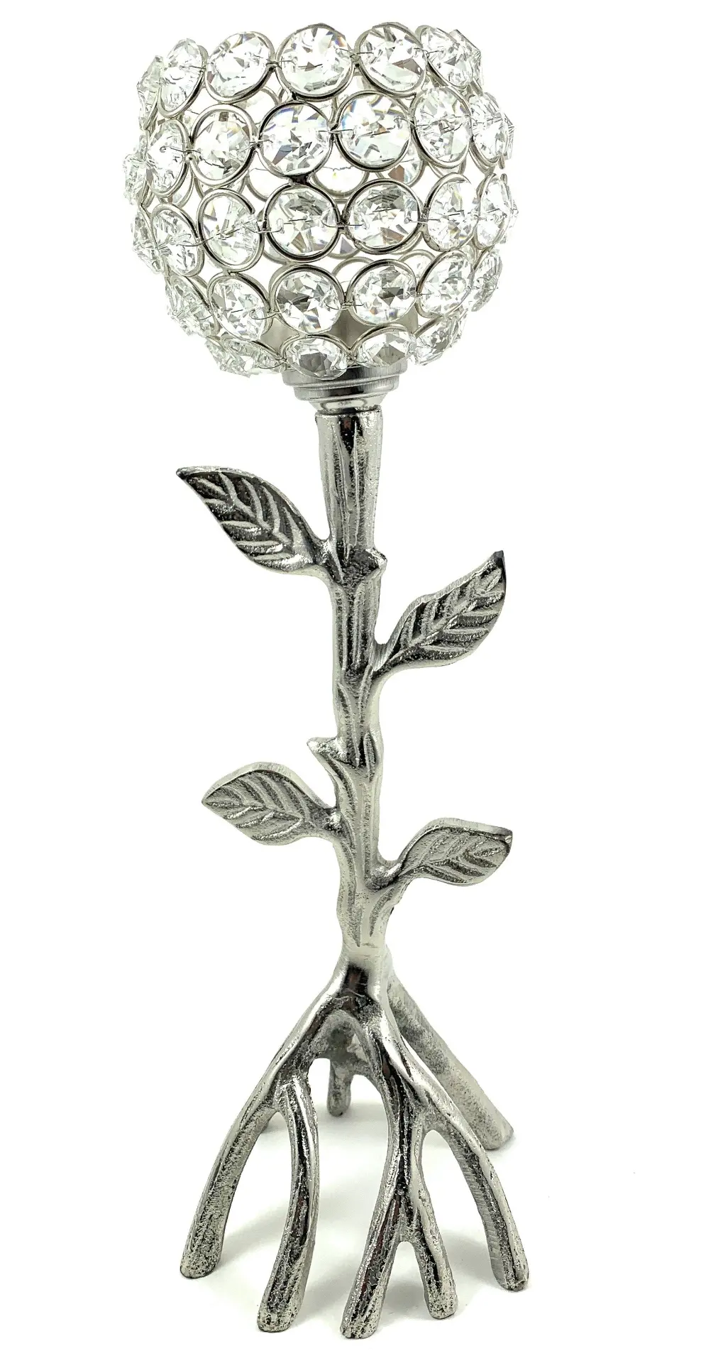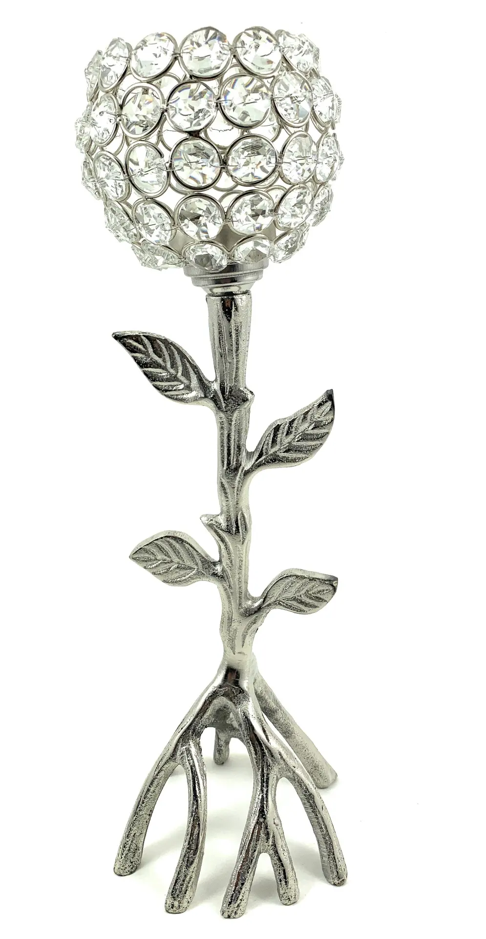 - Handcrafted Crystal Candle Holder. Made of High Quality Crystals & Aluminum. Approx 13.2″ High