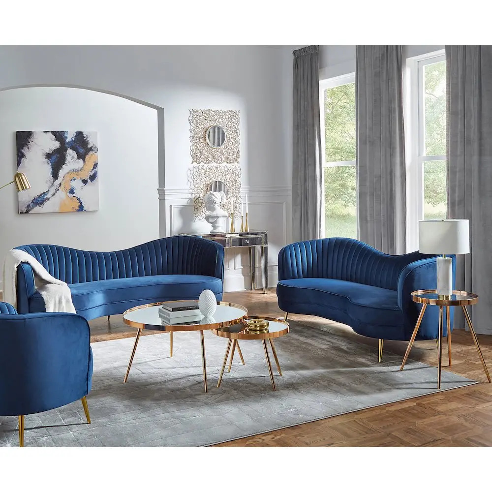 Sophia 3-piece Upholstered Channel Tufted Sofa Set Blue