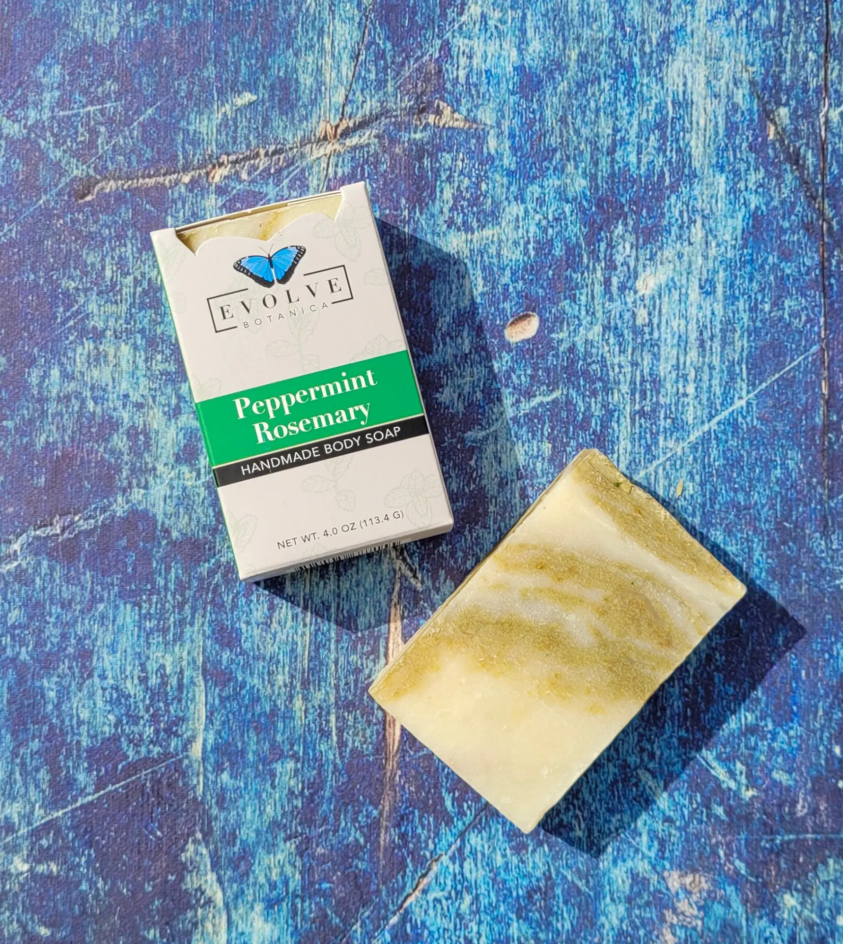 Ingredients: Olive Oil, Coconut Oil, Grapeseed Oil, Sustainably-sourced Palm Kernel Oil, Sodium Hydroxide, Cocoa Butter, Shea Butter, Peppermint Essential Oil, Rosemary Essential Oil, Ground Rosemary.