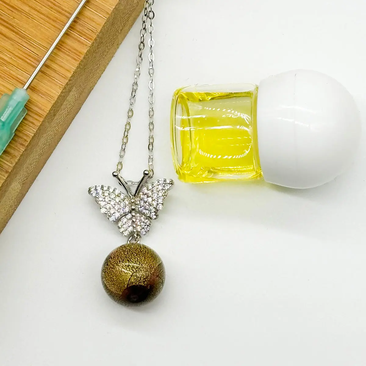 Sterling Silver Diamond Butterfly Aroma Necklace – Starry Night | Energy & Healing | Diffuse on the go