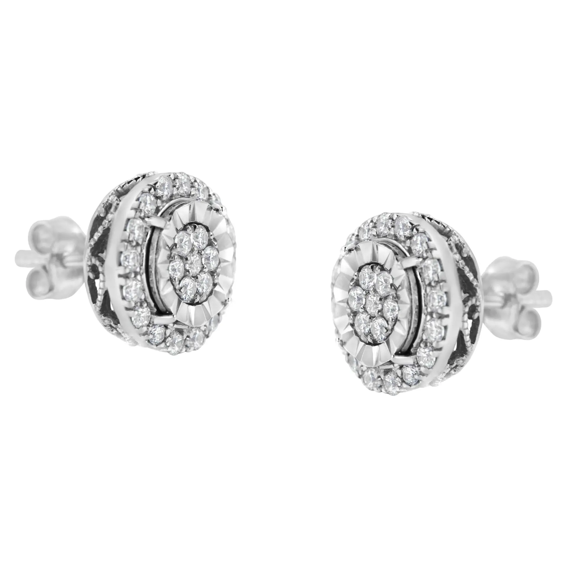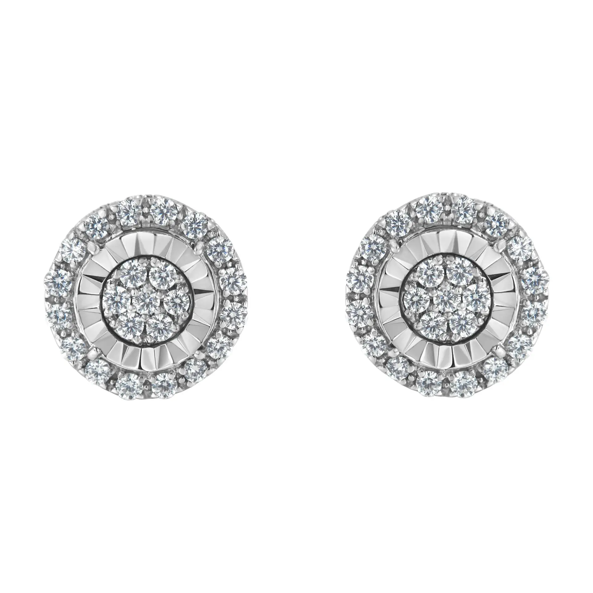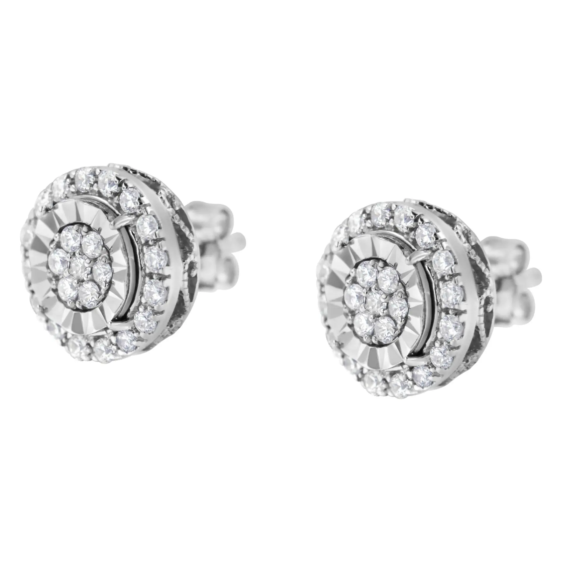 Sterling Silver Diamond Cluster Earrings (1 cttw, I-J Color, I2-I3 Clarity)