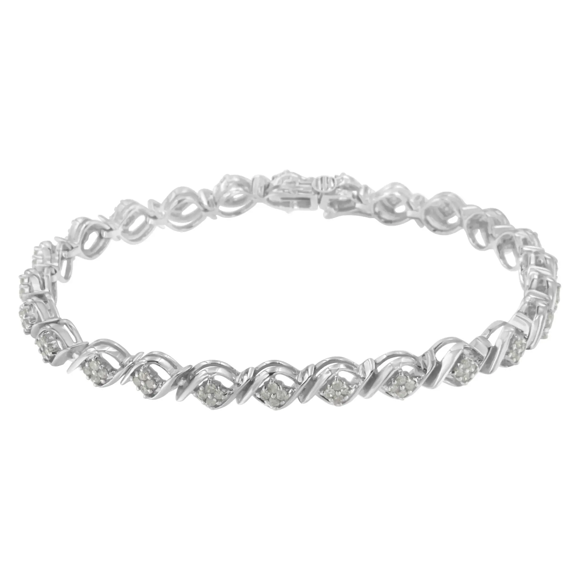 Enjoy this charming diamond bracelet that sparkles with with round brilliant cut diamonds set in circular links. Crafted in cool sterling silver this elegant design adds a touch of sparkle to any outfit. It has a total diamond weight of 1 carat.