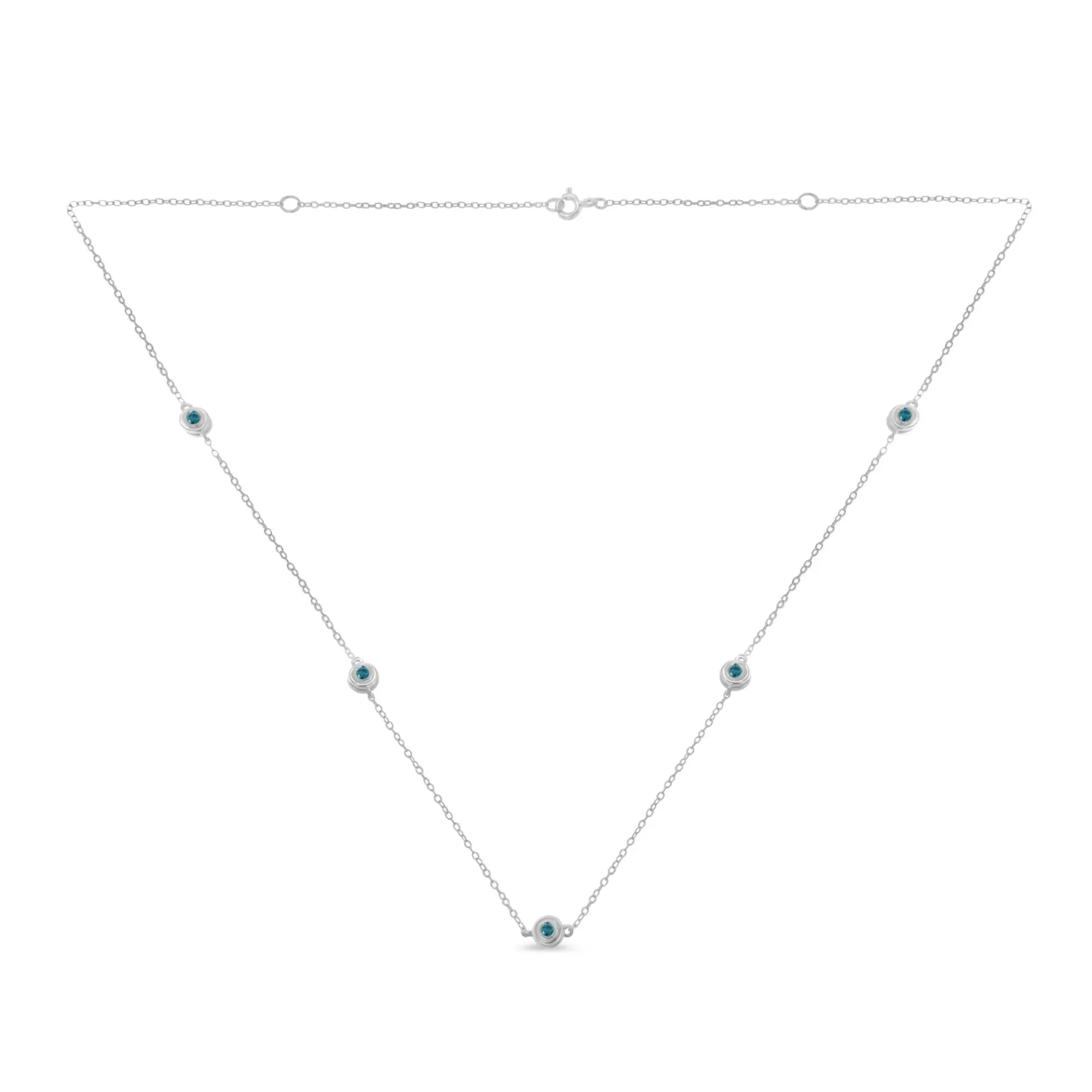 A treated blue diamond and sterling silver station bracelet. It features ten diamonds set in a .925 quality sterling silver rolo chain. The total diamond weight is .54 carats.