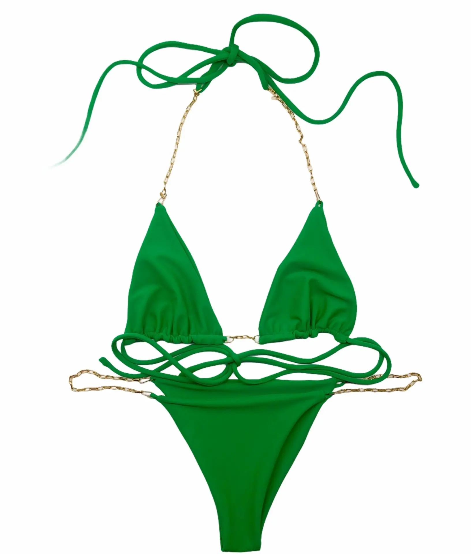 - Triangle top with neck and back ties.