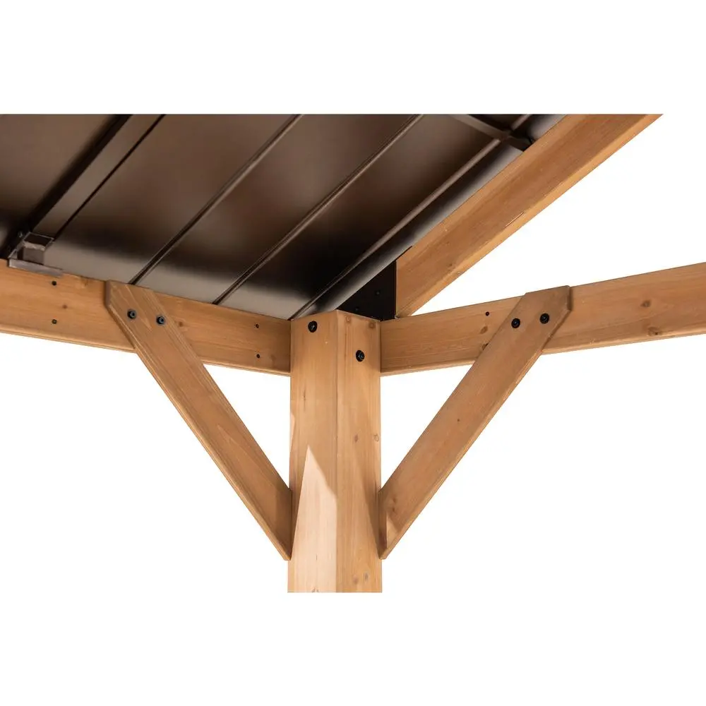 Expand your living space by bringing the indoors outside and creating your end-of-the-day oasis thats the perfect spot for entertaining family and friends. This 13 ft. x 15 ft. gazebo by the worlds leading ready-to-assemble outdoor structure maker, Sunjoy, creates the perfect outdoor setting for any time of the year. Spend all four seasons enjoying a covered spot outdoors under the Cedar wood frame with a sturdy rust-resistant powder-coated steel roof top that will stand the test of time. The classic gable roof design provides just the right amount of airflow while keeping occasional inclement weather at bay. Set the mood by suspending a chandelier from the incorporated ceiling hook for functional light and high design. With straight-forward, easy-to-follow assembly instructions youll be relaxing with your beverage of choice in your favorite new outdoor living space for years to come.