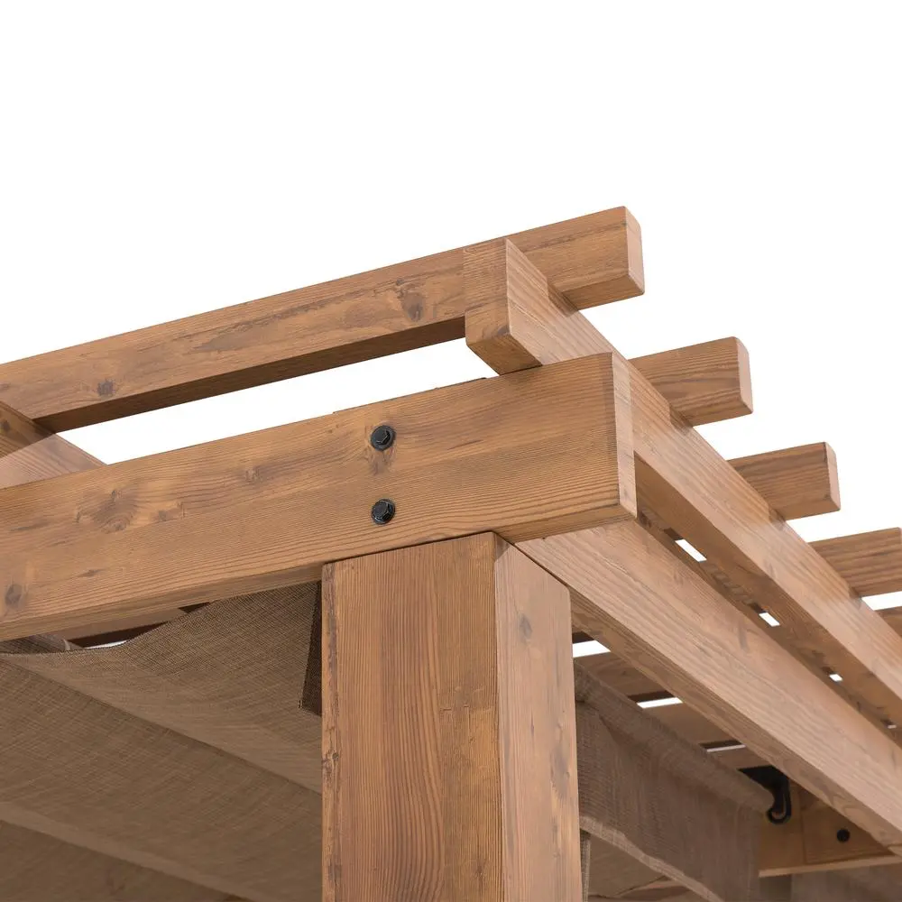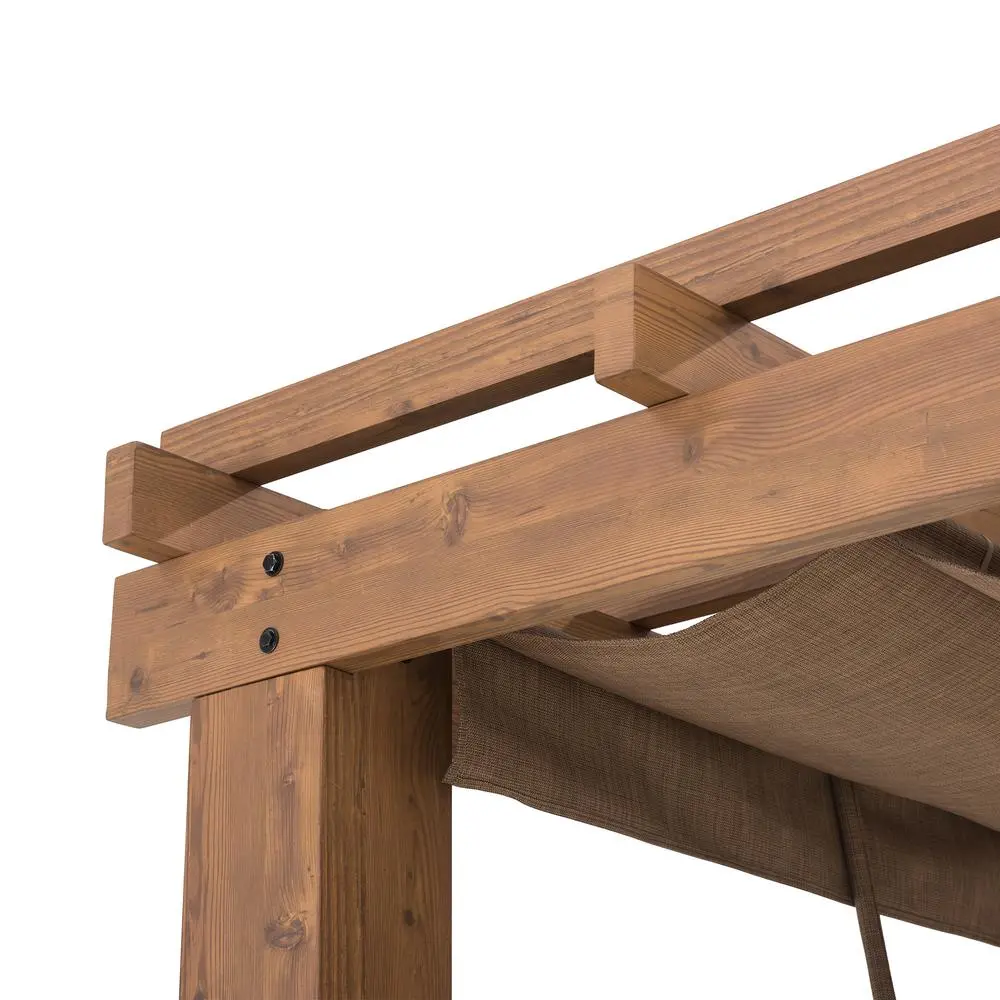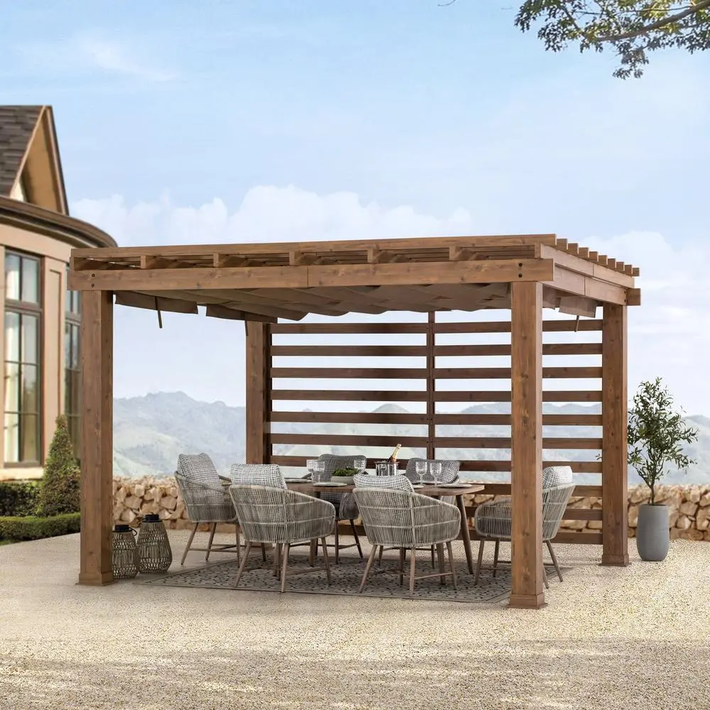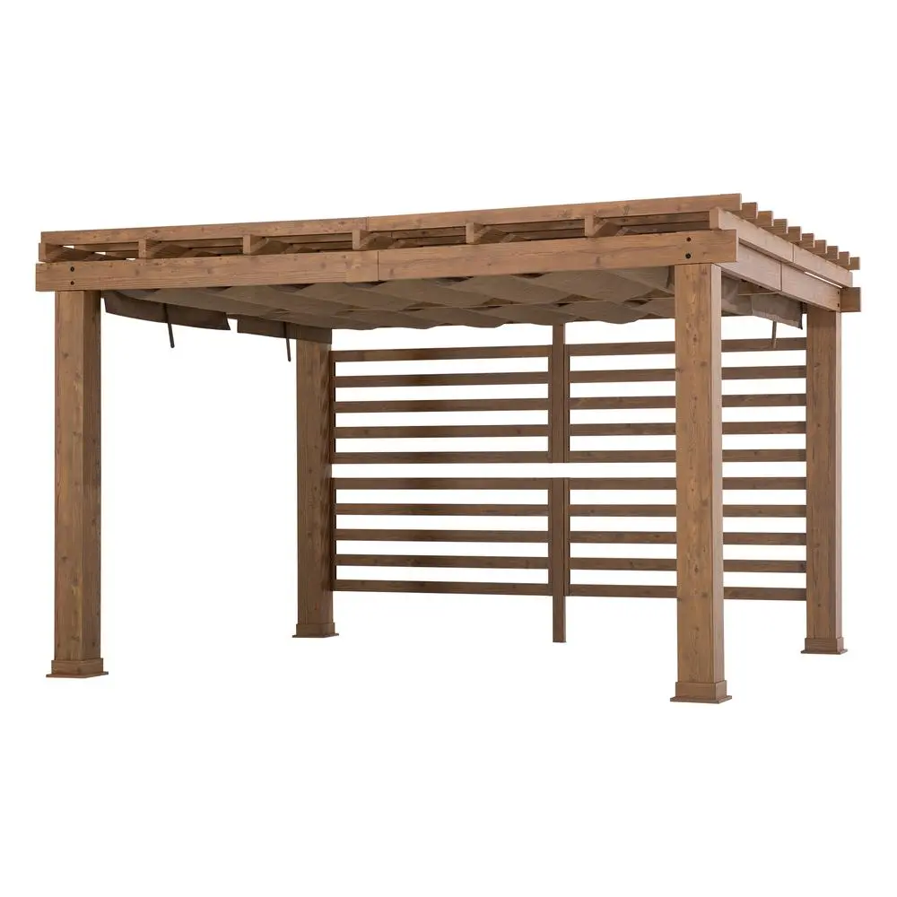 Are you looking to relax in your backyard, but it is too hot in the direct sun where you live to comfortably enjoy being outdoors? The SummerCove sling pergola provides the perfect solution. This 13 ft. x 11 ft. pergola allows you to adjust the canopy based on your personal shading preferences. Slide it open to enjoy a warm day or easily close it to protect yourself from the glaring sun. The size is compact enough for tight spaces and yet large enough to accommodate lounge furniture for small gatherings. A weather-resistant sling fabric canopy and a durable frame made of powder-coated rust-resistant steel with a natural wood appearance finish, provide for years of enjoyment with minimal maintenance. With straight-forward, easy-to-follow assembly instructions youll soon be relaxing in your favorite new outdoor living space, and for years to come