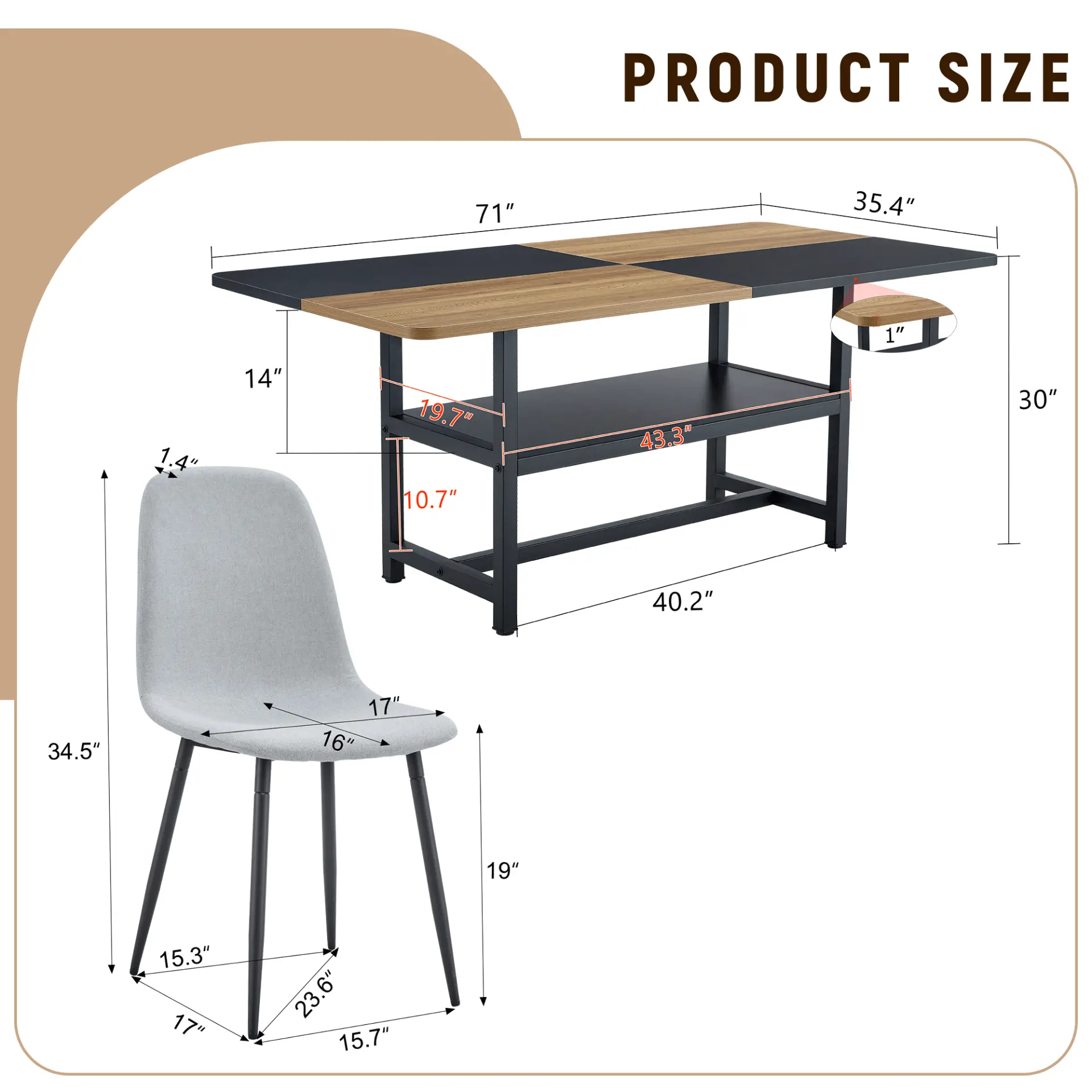 - Size adaptation: This dining table measures 71 inches in length, 35.4 inches in width, and 30 inches in height. With its grand specifications, it can easily accommodate multiple people dining at the same time, making it perfect for both family gatherings and friend parties.