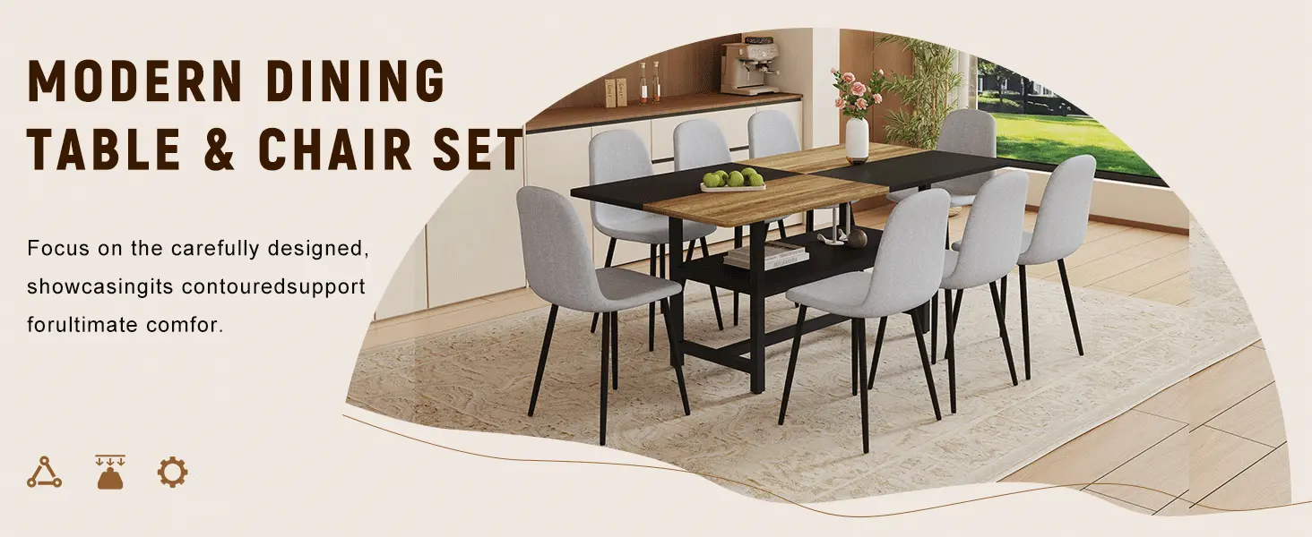 - Reassuring Anti-Slip Design: The base of the table is equipped with anti-slip feet that protect your floor like guardians, ensuring the stability of the dining table.At the same time,the black metal chair legs with anti-slip feet at the bottom, like steadfast companions.