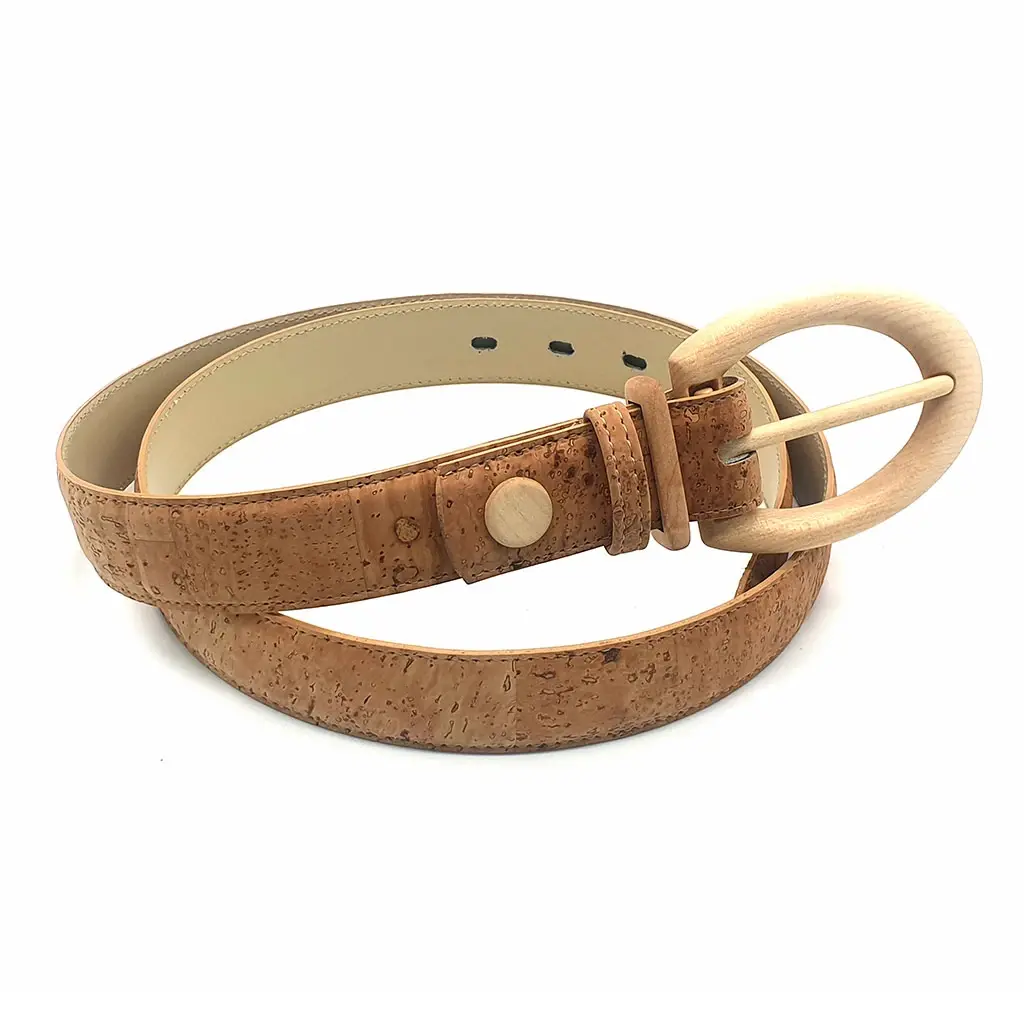 Brown belt material color fits great with wooden buckles from maple and beech.