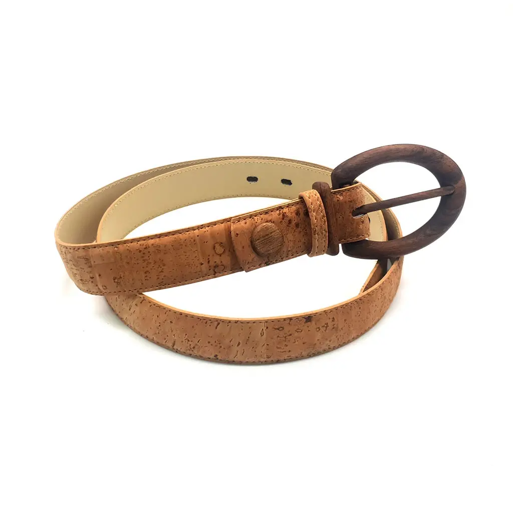 Tahoe collection combines patented craftsmanship solutions to fix wooden buckles made of used wood offcuts to the belt with a wooden screw.