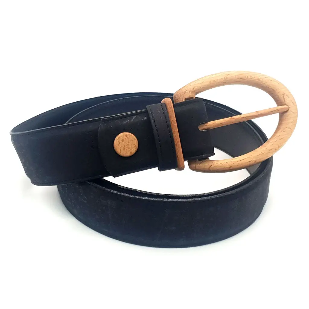 Tahoe collection combines patented craftsmanship solutions to fix wooden buckles made of used wood offcuts to the belt with a wooden screw.