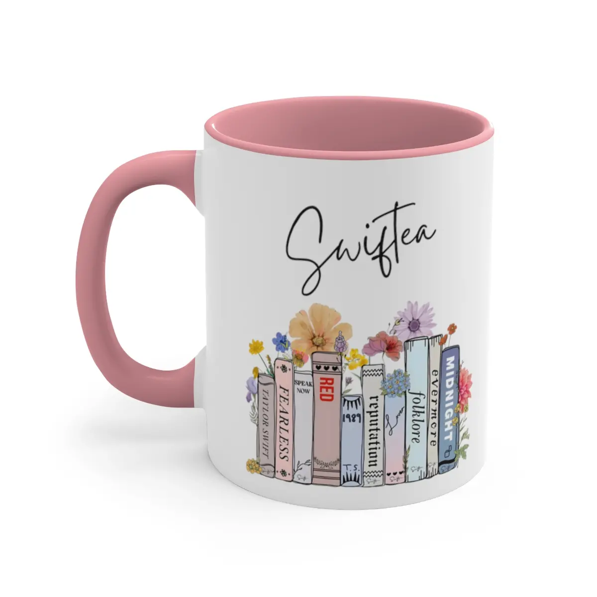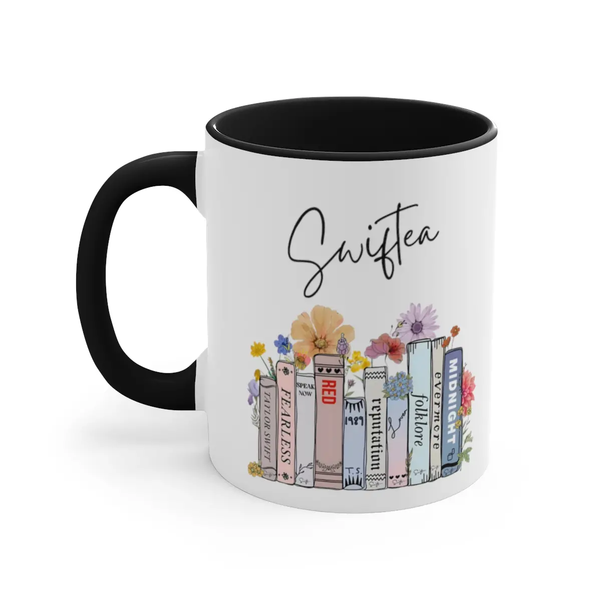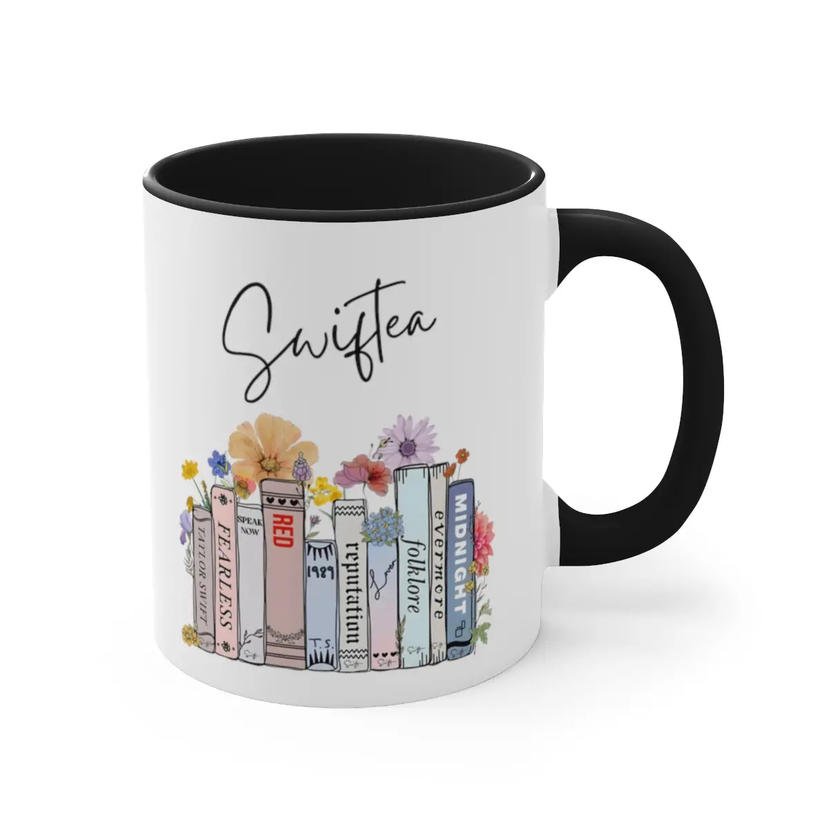 So why wait? Elevate your daily sips and showcase your love for Swiftie with our “Era’s Tour Book and Flowers Swiftea- Accent Coffee Mug, 11oz” Choose your favorite color, fill it with your preferred brew, and let the music-inspired magic infuse your day. Get yours today!