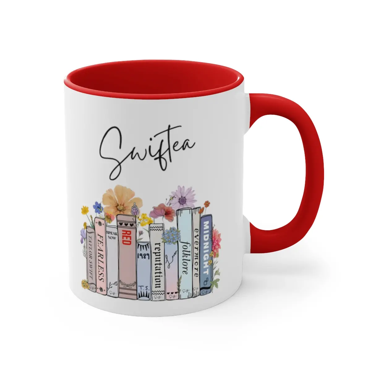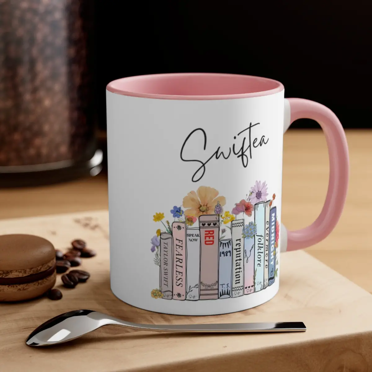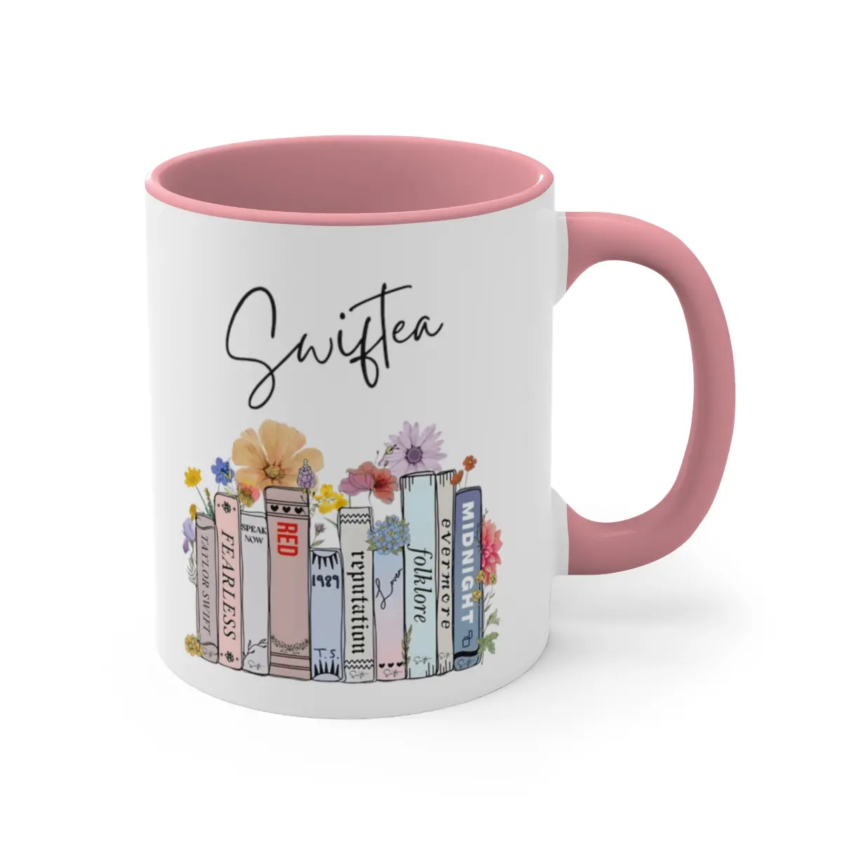 So why wait? Elevate your daily sips and showcase your love for Swiftie with our “Era’s Tour Book and Flowers Swiftea- Accent Coffee Mug, 11oz” Choose your favorite color, fill it with your preferred brew, and let the music-inspired magic infuse your day. Get yours today!