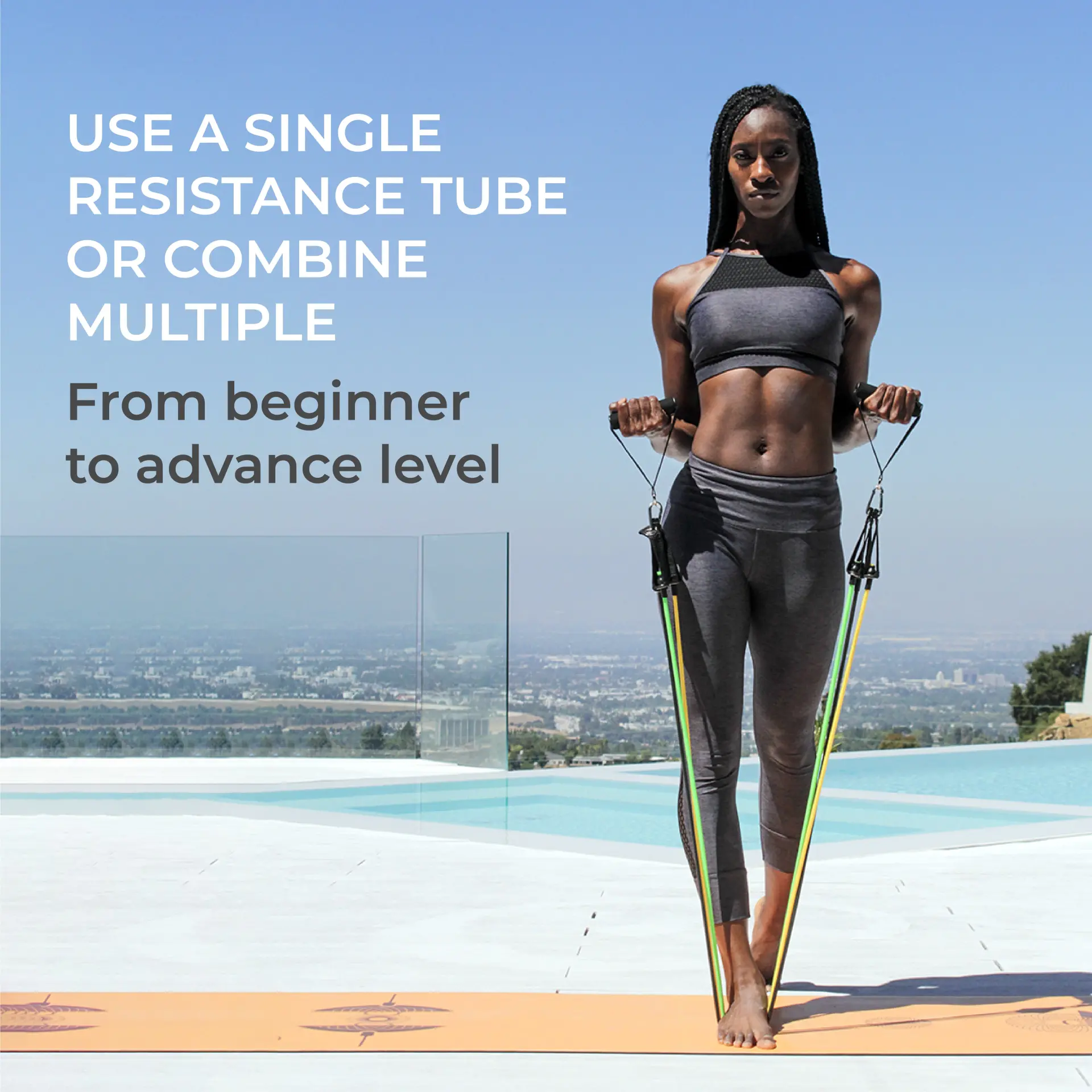 • Full Body Workout Resistance Tube Kit: This tube kit offers different resistance levels featuring resistance levels from 4 to 38 lbs is perfect for targeting multiple muscle groups, helping to build strength, flexibility, and muscle tone.