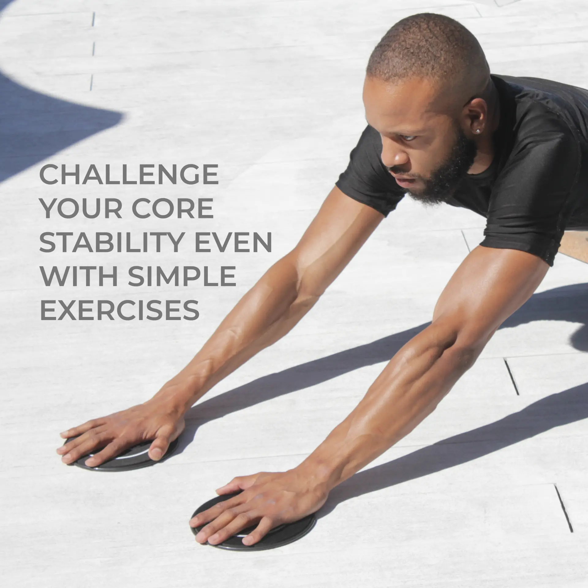 • Sliding Core Exercise Discs: Adds stability to your workouts and intensifies your core exercises. These discs help activate your abs, glutes, and legs for a full-body burn.