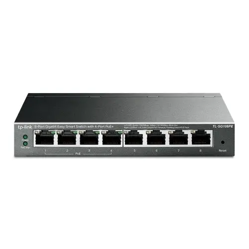 TP-LINK (TL-SG108PE) 8-Port Gigabit Easy Smart Switch with 4-Port PoE+, Steel Case