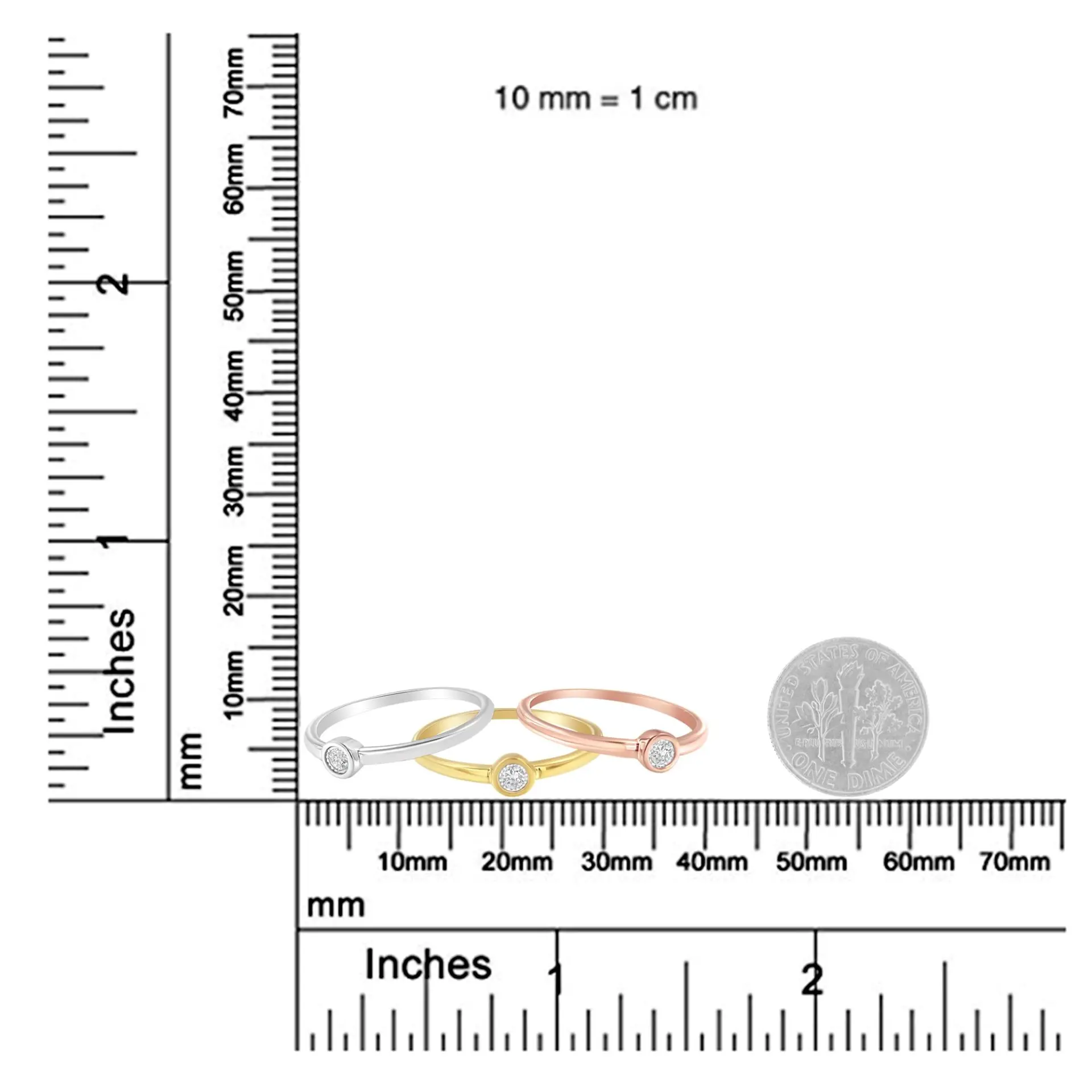 A promise ring crafted in yellow, white, and rose sterling silver that is micron 2 plated with 14 karat gold and featuring a miracle set round diamond. This delicate ring has a total diamond weight of .15 carats.