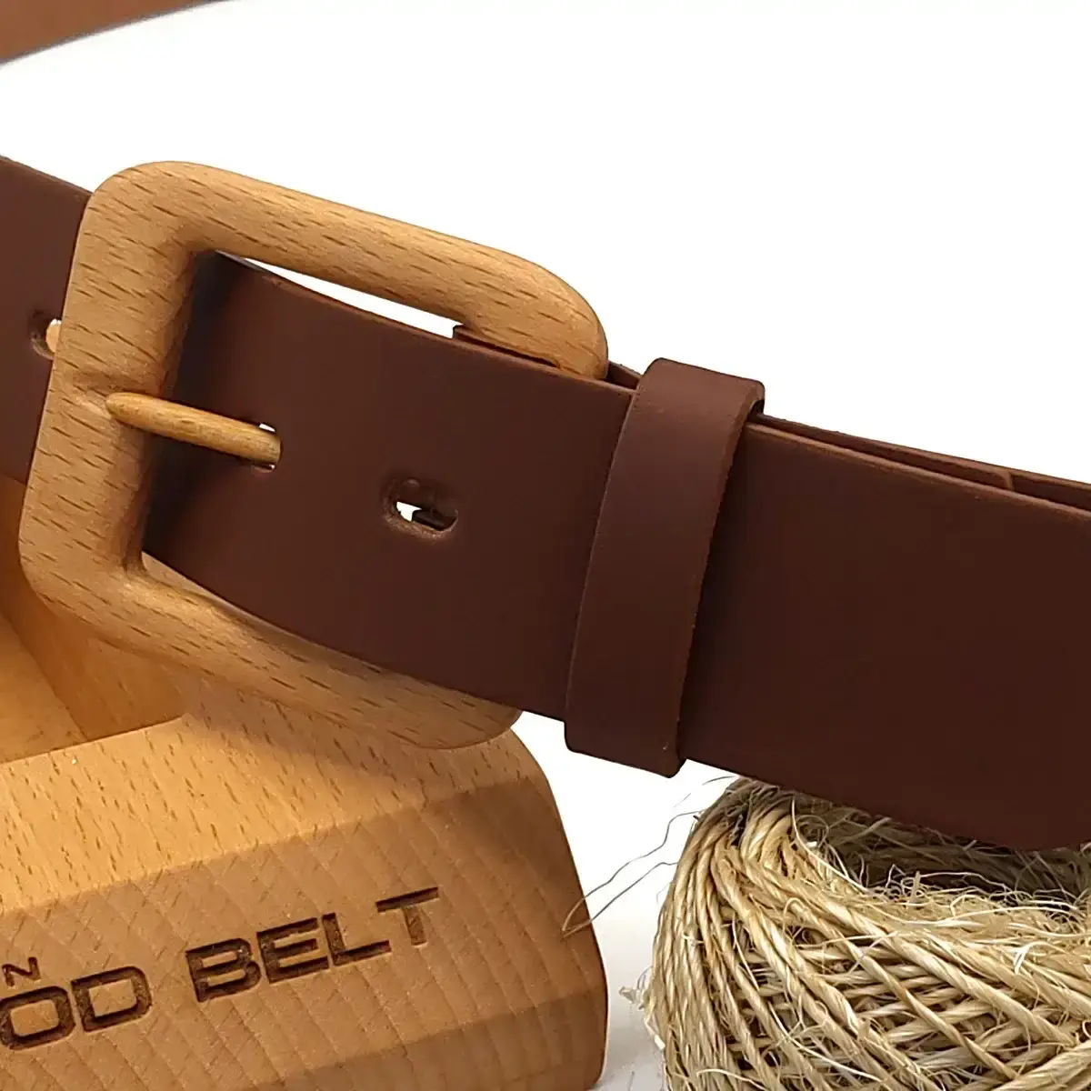 High-quality split leather. A unique combination of the wooden buckle with a 30 or 40-mm wide strap is always in fashion.