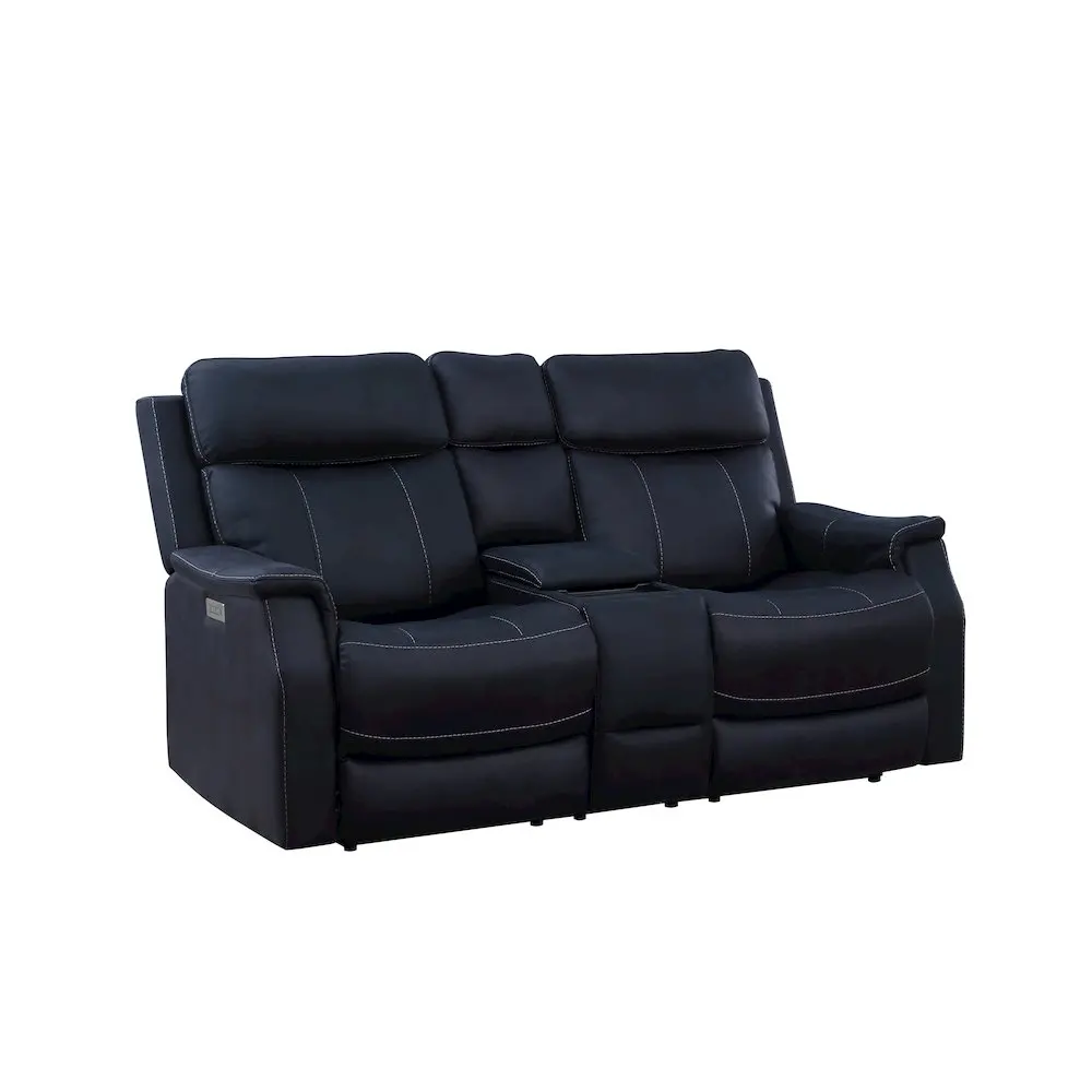 A smartly tailored Reclining Set with gentle shaped seats and a luxurious leather-like cover, the Valencia Set has power headrest and power footrest in a clean contemporary silhouette. Choose from Sofa, Loveseat or Chair for an elegant style that excels in comfort. Some of the details in the collection include a Center Console on the Loveseat that conceals both hidden storage area and two cupholders. Hand-stitching that mirrors the shaped seat and a svelte scoop arm add to this special design. A control panel on each outside arm controls the power and comes with a convenient USB charging port.