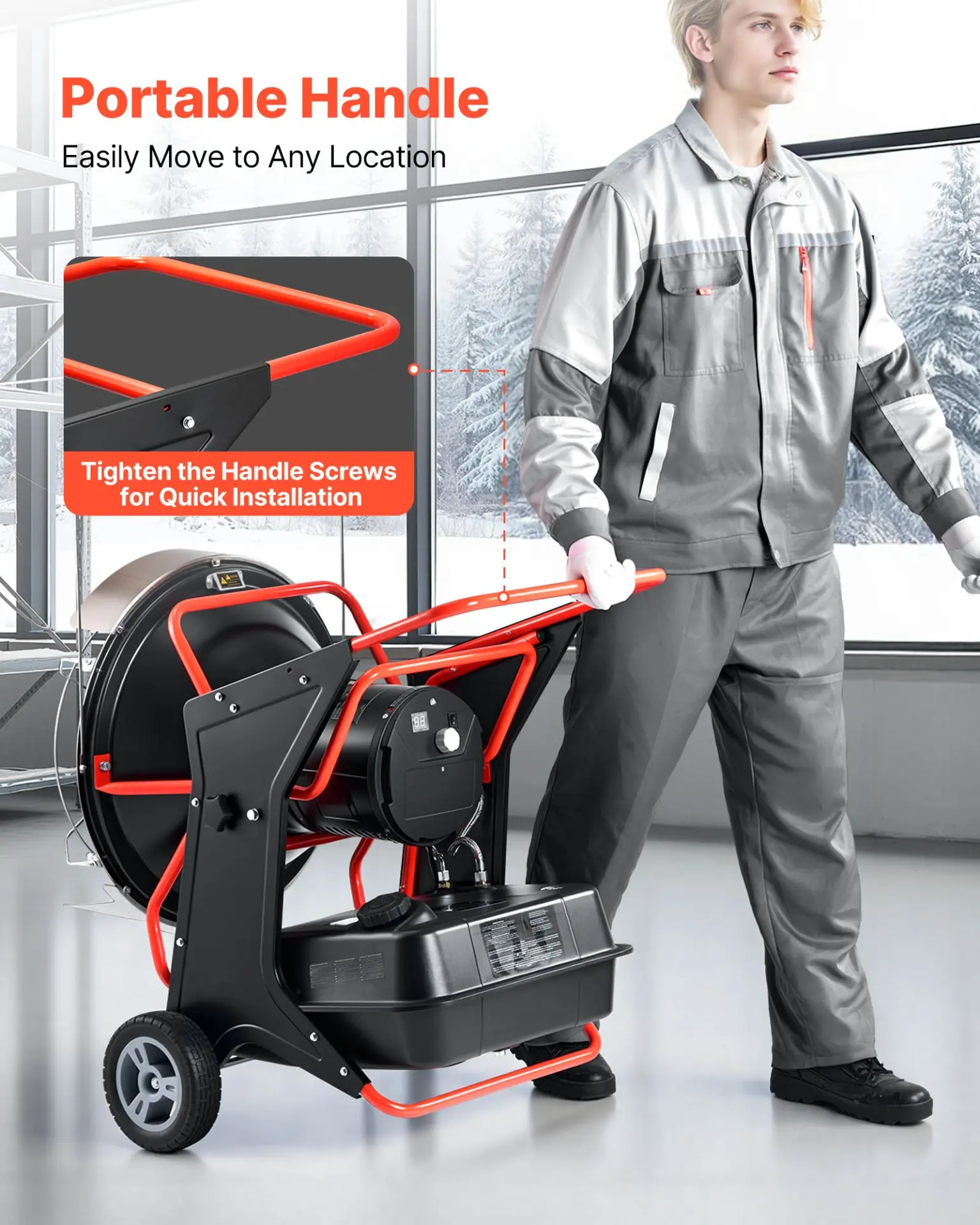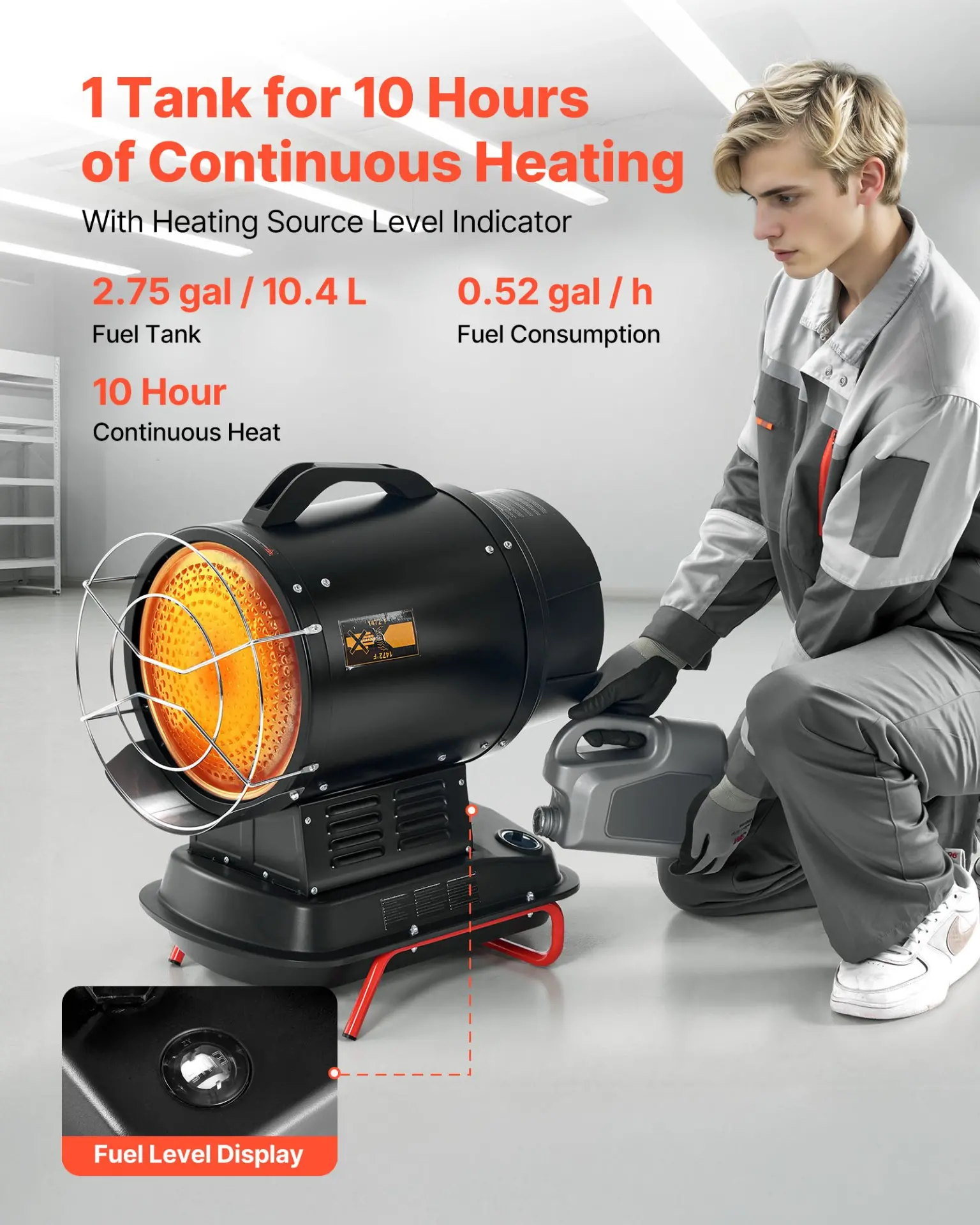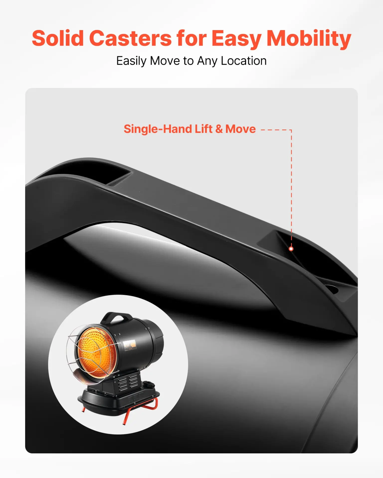 VEVOR 125000 BTU Radiant Kerosene Diesel Heater, Portable Industrial Space Heater with Adjustable Temp & Wheels, Ideal for Jobsite/Garage/Warehouse/Workshop Construction Heating,Black