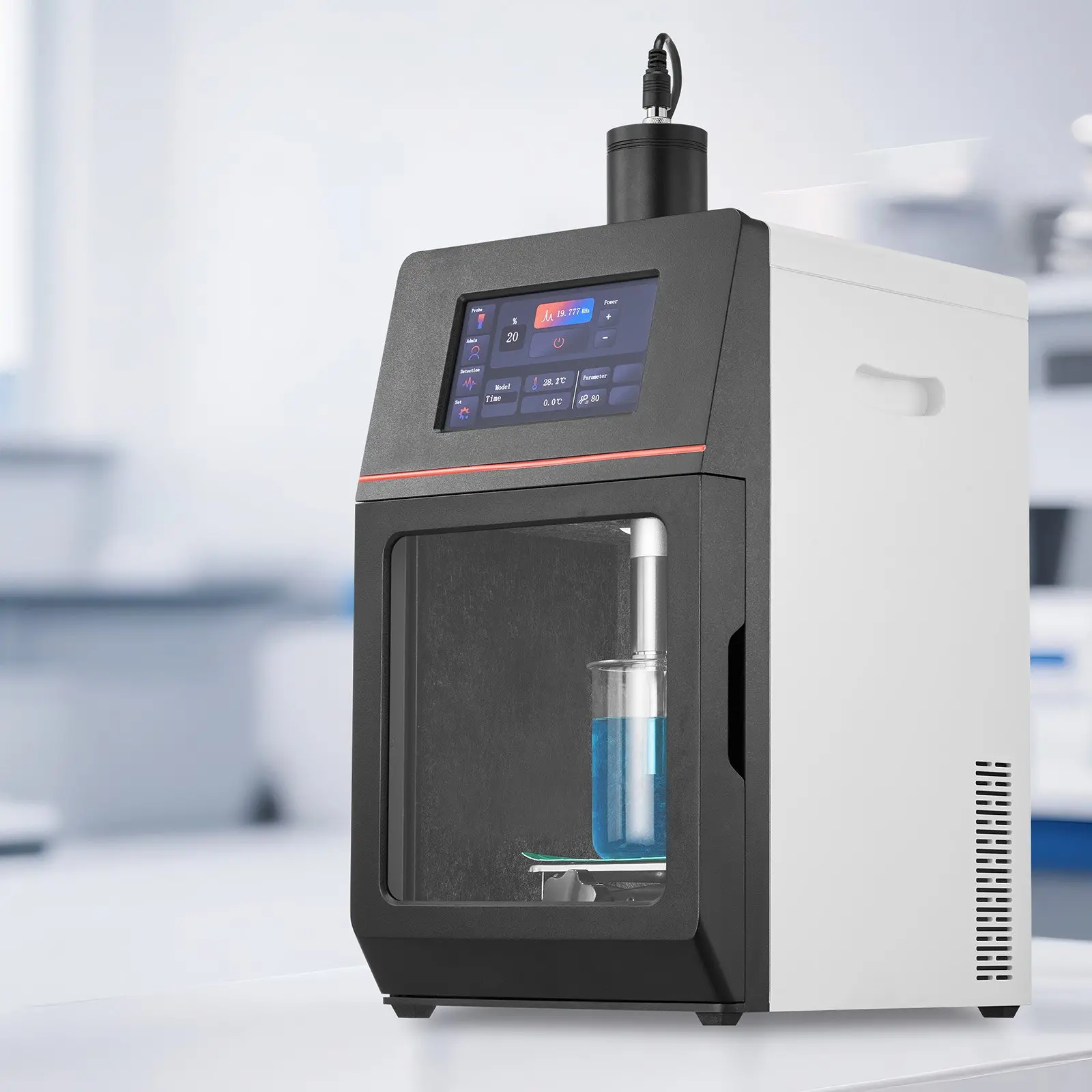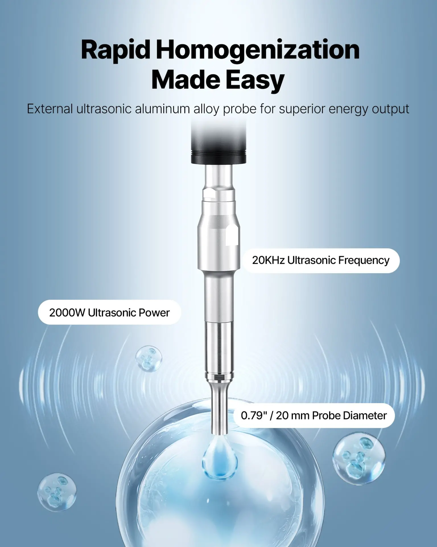 Stirrer Shaft: Titanium T1,Net Weight (Including All Accessories): 23.48 lbs / 10.65 kg,Timer: 1S-99H Adjustable,Ultrasonic Frequency: 20KHz,Item Model Number: YHAU-2000A,Ultrasonic Power: 2000W,Operating Modes: Pulse, Time, Continuous,Product Dimensions (L x W x H): 13.46 x 10.63 x 22.05 in / 342 x 270 x 560 mm,Probe: Titanium T1,Main Material: ABS Plastic, Acrylic,Power Supply: 120V 60Hz,Temperature Setting: 33.8 – 392 / 1 – 200