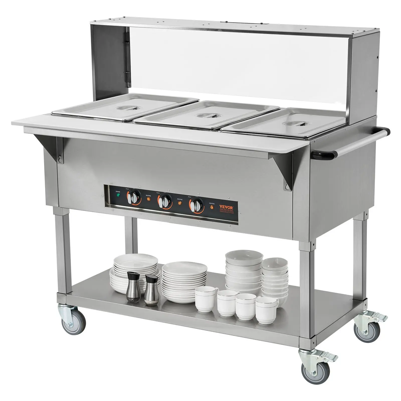 VEVOR 3-Pan Commercial Food Warmer, 3 x 20.6QT Electric Steam Table, 1500W Professional Buffet Catering Food Warmer with Acrylic Sneeze Guard, Food Grade Stainless Steel Server for Party Restaurant