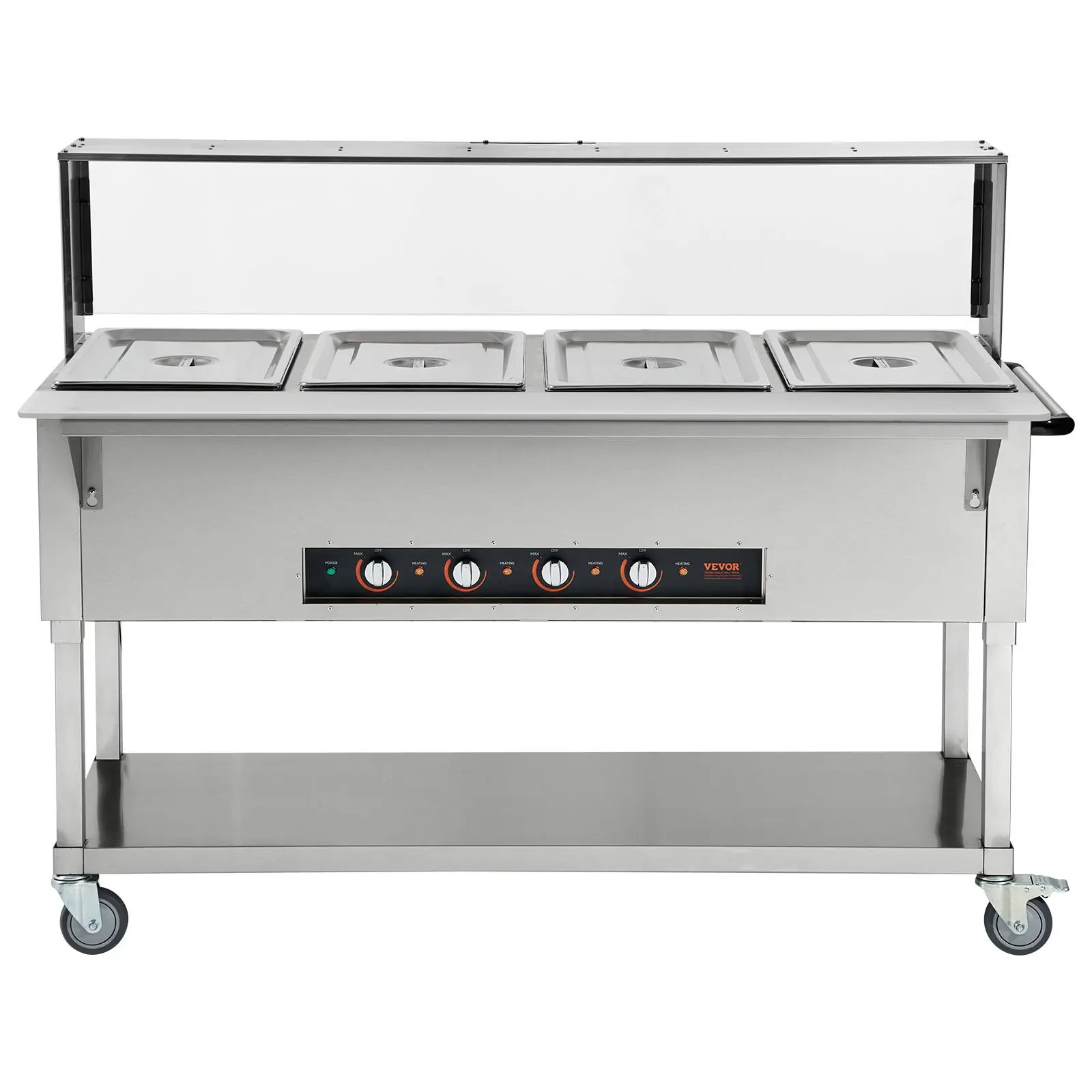 VEVOR 4-Pan Commercial Food Warmer, 4 x 20.6QT Electric Steam Table, 2000W Professional Buffet Catering Food Warmer with Acrylic Sneeze Guard, Food Grade Stainless Steel Server for Party Restaurant