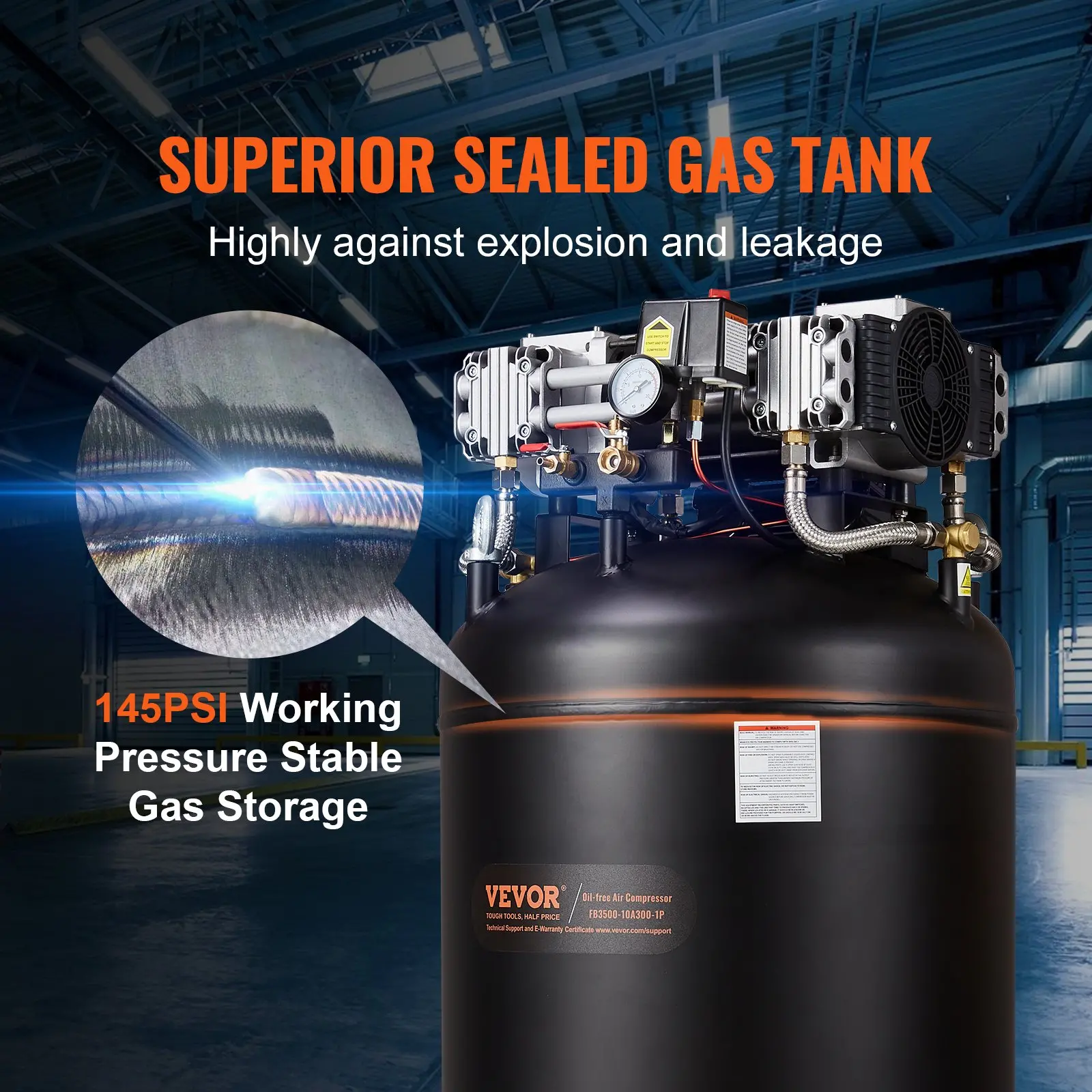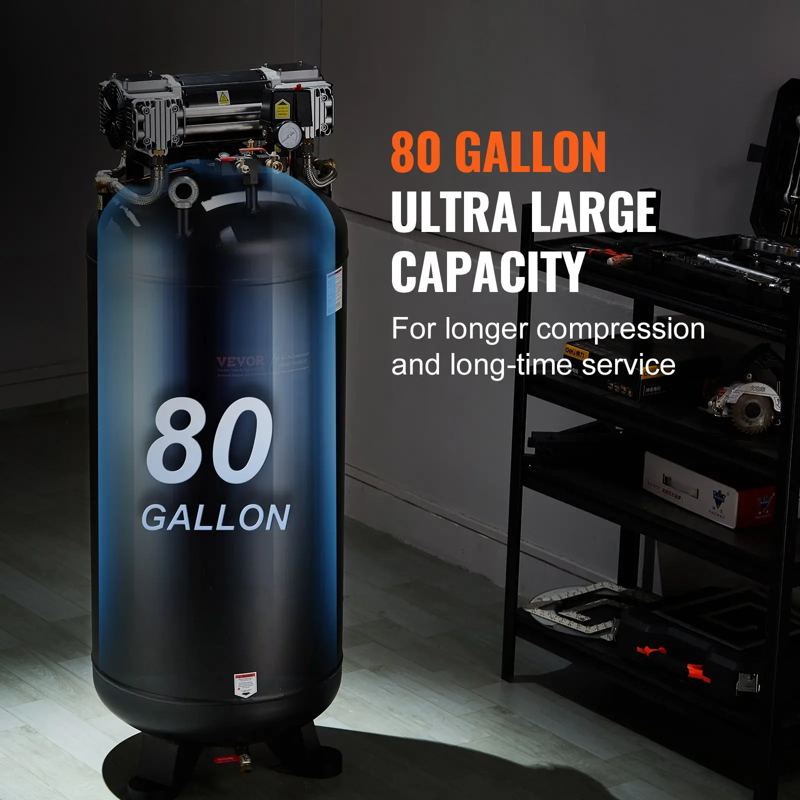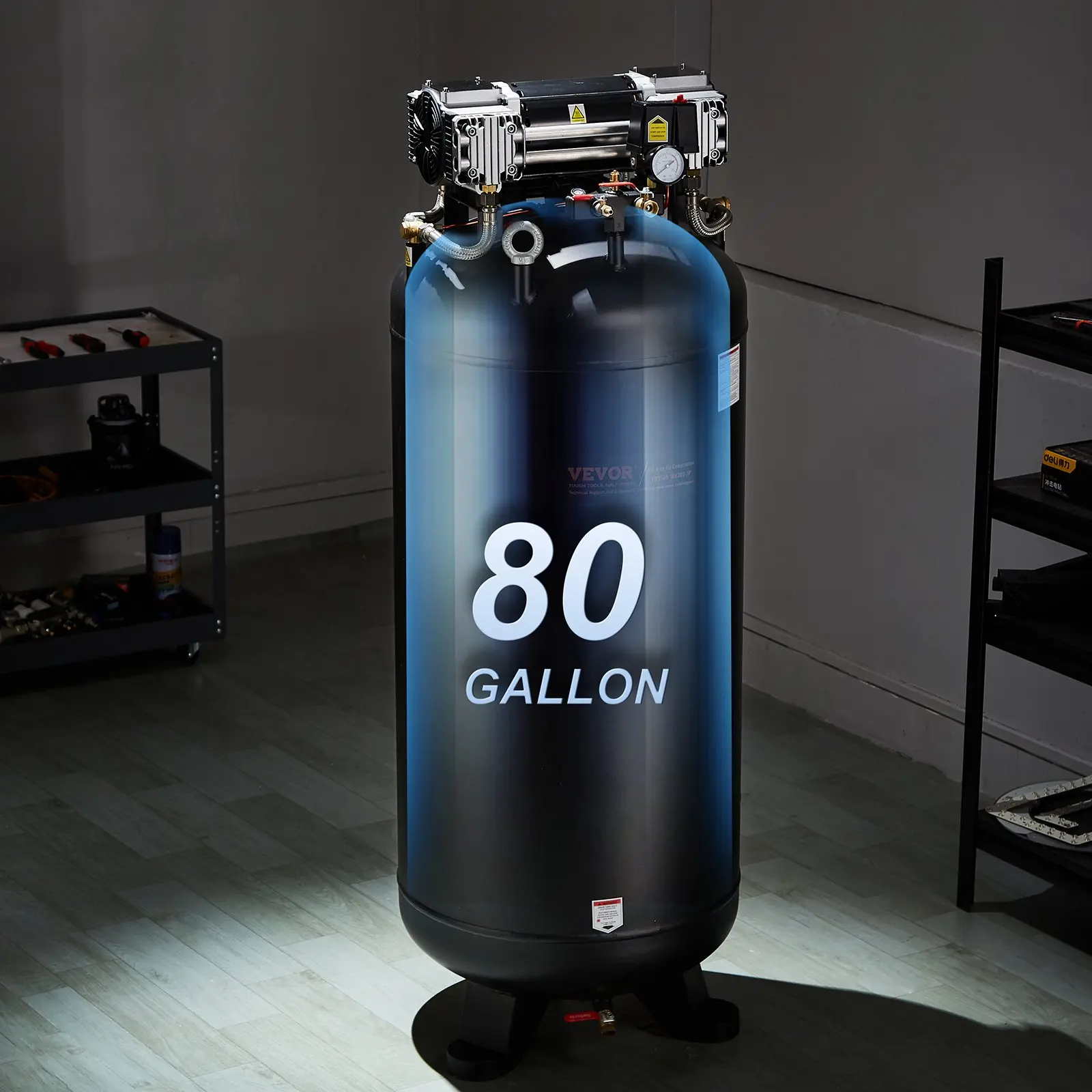 VEVOR 80 Gallon Air Compressor, 6.5HP 15.5SCFM@90 PSI, 145PSI Oil Free Stationary Air Compressor Tank, 86dB Ultra Quiet Compressor for Industrial Manufacturing, Construction Sites, Auto Repair
