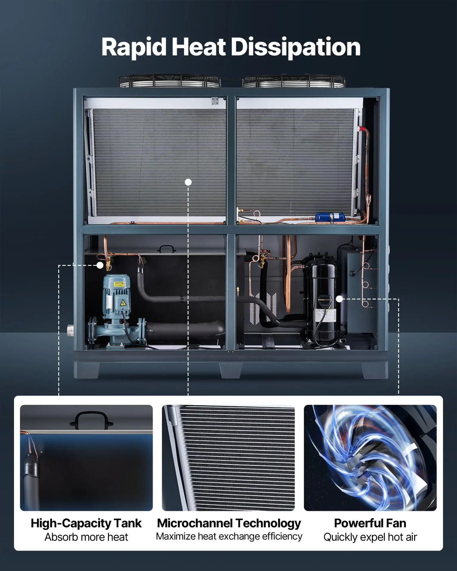 VEVOR Air-Cooled Water Chiller, 25 HP, Industrial Water Chiller with 60,480 Kcal/h Cooling Capacity, Dual Compressor, 53 Gal Large Tank, LED Display, Cooler for Cooling Water, Not Air Conditioner