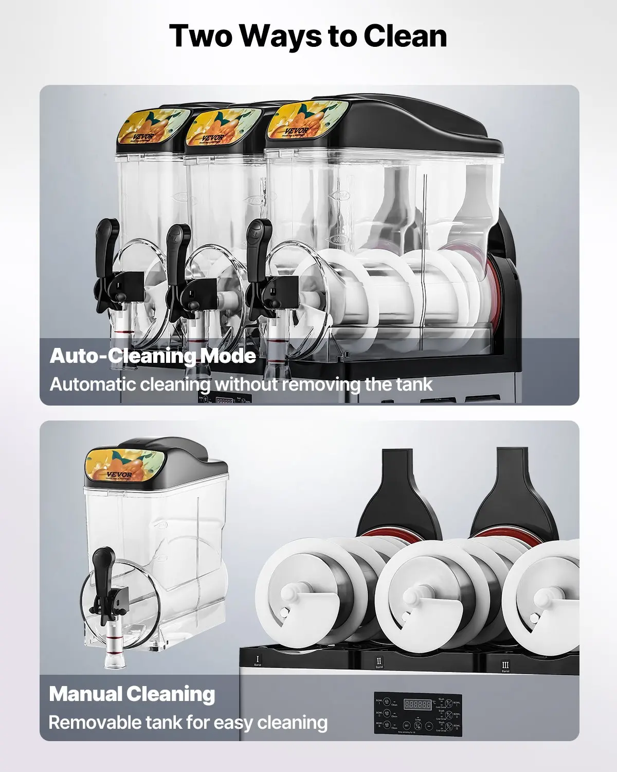 VEVOR Commercial Frozen Drink Maker, 15Lx3 Triple Tank Slushy Machine, 180 Cups Stainless Steel Margarita Smoothie Frozen Drink Machine, Slushie Maker for Home Party Restaurants Cafe Bars