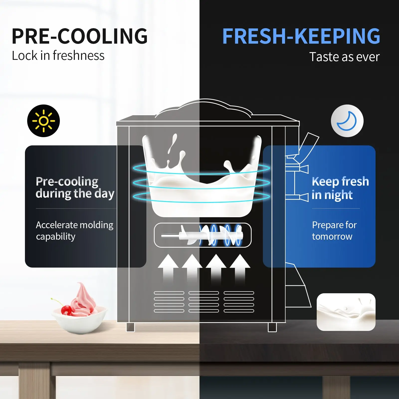 Hopper Capacity: 1.6 Gal / 6 L,Refrigerant: R410a & R134a,Model: BJH288SR2JB-Y,Product Weight: 202.8 lbs / 92 kg,Cylinder Capacity: 0.5 Gal / 2 L,Compressor: 1050W,Ice Cream Output: 5.8-7.9 Gal / 22-30 L per Hour,Voltage & Power: 110V / 60Hz; 2350W,Product Dimensions: 29.3″ x 21.3″ x 34″ / 74.5 x 54 x 86 cm
