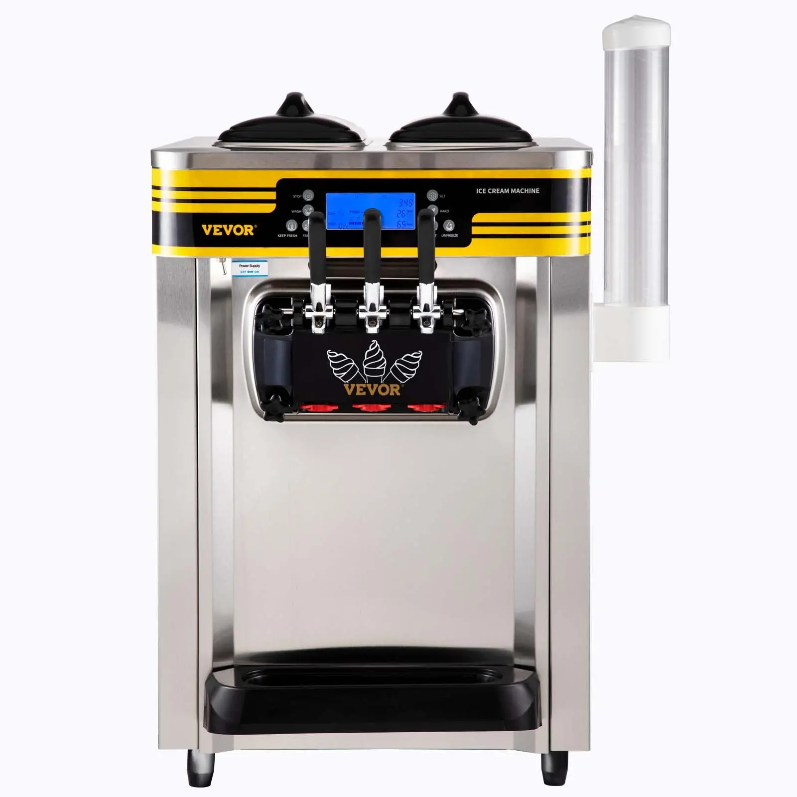 VEVOR Commercial Ice Cream Maker, 22-30L/H Yield, 2350W Countertop Soft Serve Machine with 2x6L Hopper 2L Cylinder LCD Panel Puffing Shortage Alarm, Frozen Yogurt Maker for Restaurant Snack Bar, Silve