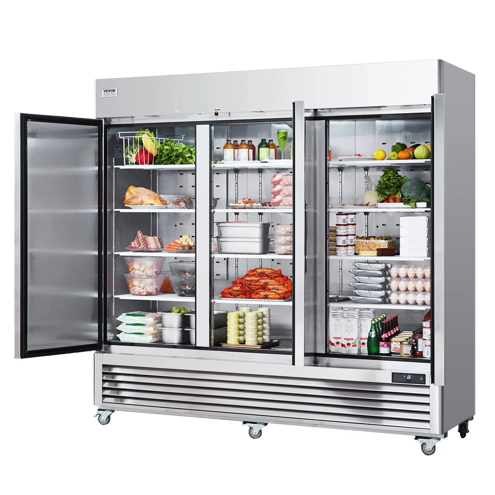 VEVOR Commercial Refrigerator 60.42 Cu.ft, Reach In 82.5″ W Upright Refrigerator 3 Doors, Auto-Defrost Stainless Steel Reach-in Refrigerator & 12 Shelves, 33 to 41 Temp Control, LED Light, 4 Wheels