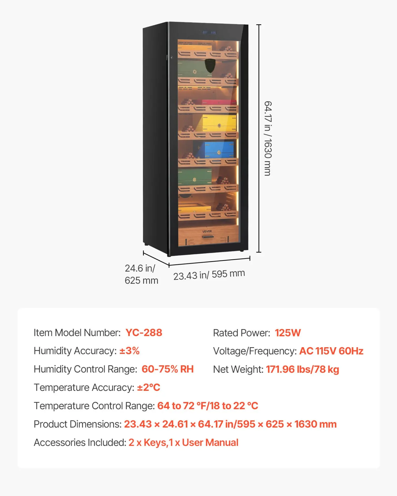 288L Electric Cigar Humidor, Temperature & Humidity Control